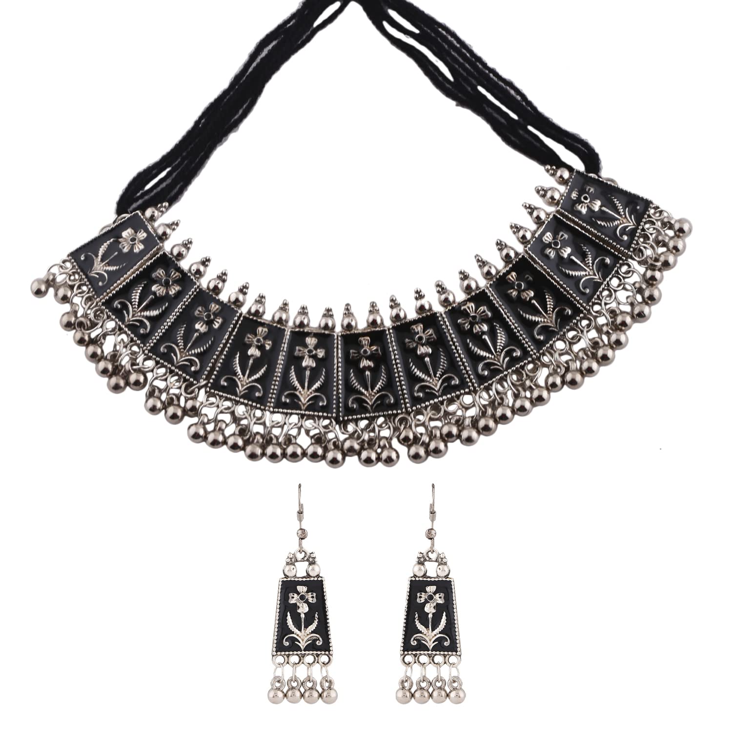 Shining diva presents this latest oxidized silver jewellery set stylish necklace set for women. This casual or wedding party wear oxidised necklace set for women is made of fine quality material which looks stylish and goes perfect with any attire. This traditional tribal Afghani Boho choker necklace set for women is perfectly suited for wedding or party wear. Shining diva is a well known brand across fashion jewellery sector. shining diva has huge collection of latest statement haram necklace jewellery, traditional necklace set, south indian type Lakshmi temple pendant set and other jewellery accessories which includes fancy bangles for women, wedding bangles, ear cuffs, traditional bangles kada, neck choker, fashion party wear necklace for girls and jhumki jhumka earrings. shining diva is pioneer of imitation jewellery and design pearl necklace set for women and american diamond hangings party wear stylish earrings. shining diva fashion and traditional jewellery give true value for your money. buy shining diva trendy artificial jewellery from amazon in offer. these are also ideal for special birthday gifts for girls, wife, love valentine gifts for girlfriend, wedding gifts and anniversary gifts.