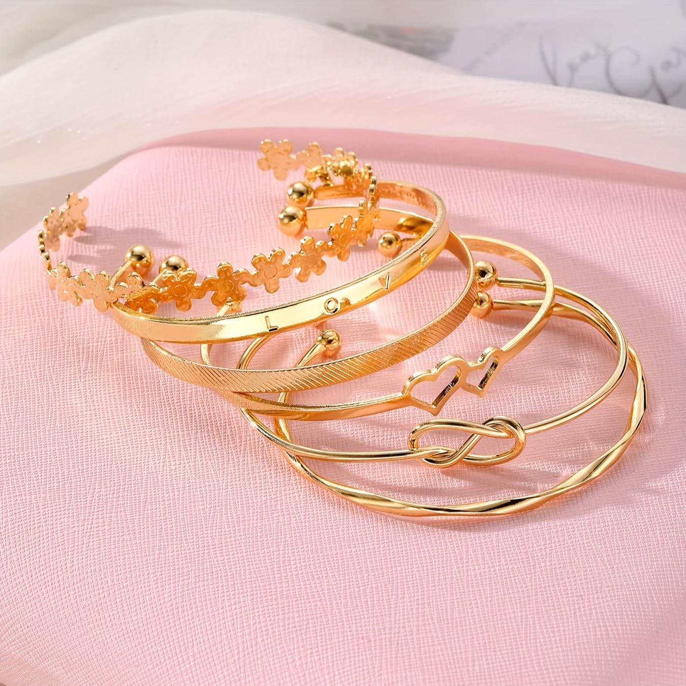 Shining Diva Fashion Set of 6 Latest Stylish Multilayer Gold Plated Bangle Bracelet for Women and Girls (16898b)