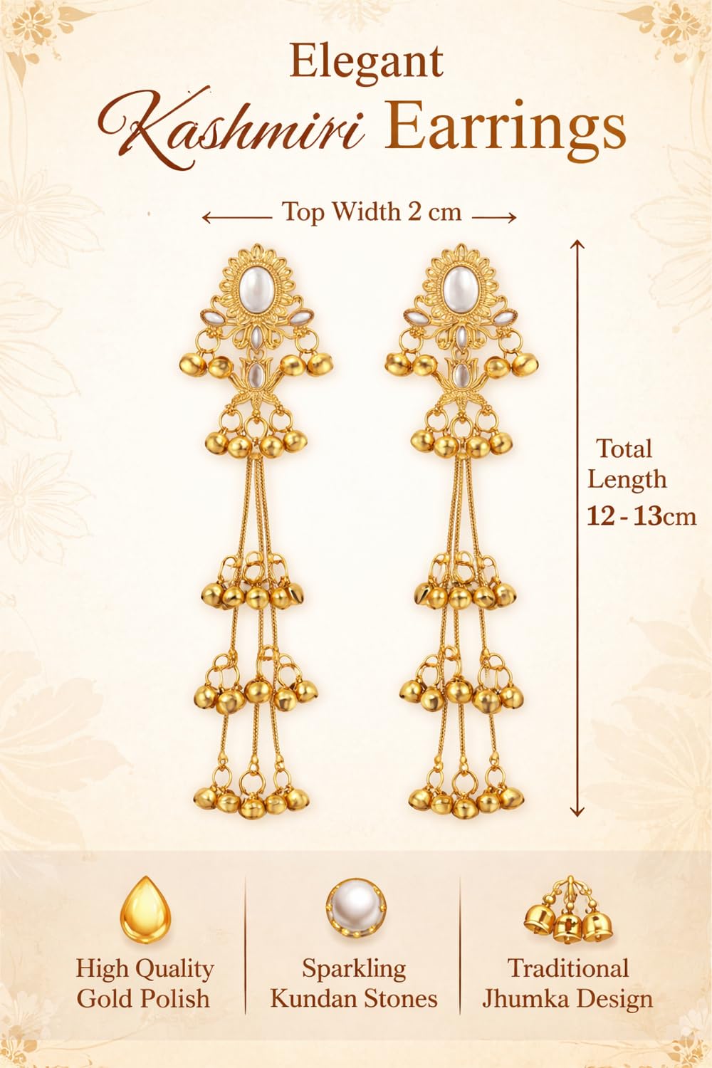 Shining Diva Fashion Traditional Long Kashmiri Earrings for Women | Latest Stylish Fancy Gold Plated Ghungroo Wedding Party Girls Jewellery