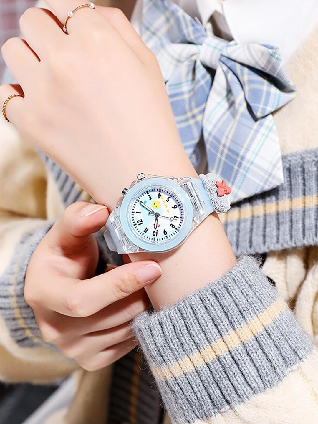 Introducing the Cartoon Rabbit Pink & Blue Light watches for kids, a combo of two great looking stylish watches for girls and boys. These watches feature a big round dial window, making it easy to read. The adjustable strap is suitable for wrists up to 9 inches in circumference, making it perfect for ages 3-14 years old kids to learn time. You can make the watch even more fun with a press of the button, which activates 7 multicolour disco lights around the dial. The material of the strap is made up of silicone, which makes it very comfortable and durable. This watches also features a unique radium strap that is sure to stand out. Get the Light watch for kids and make learning the time fun!