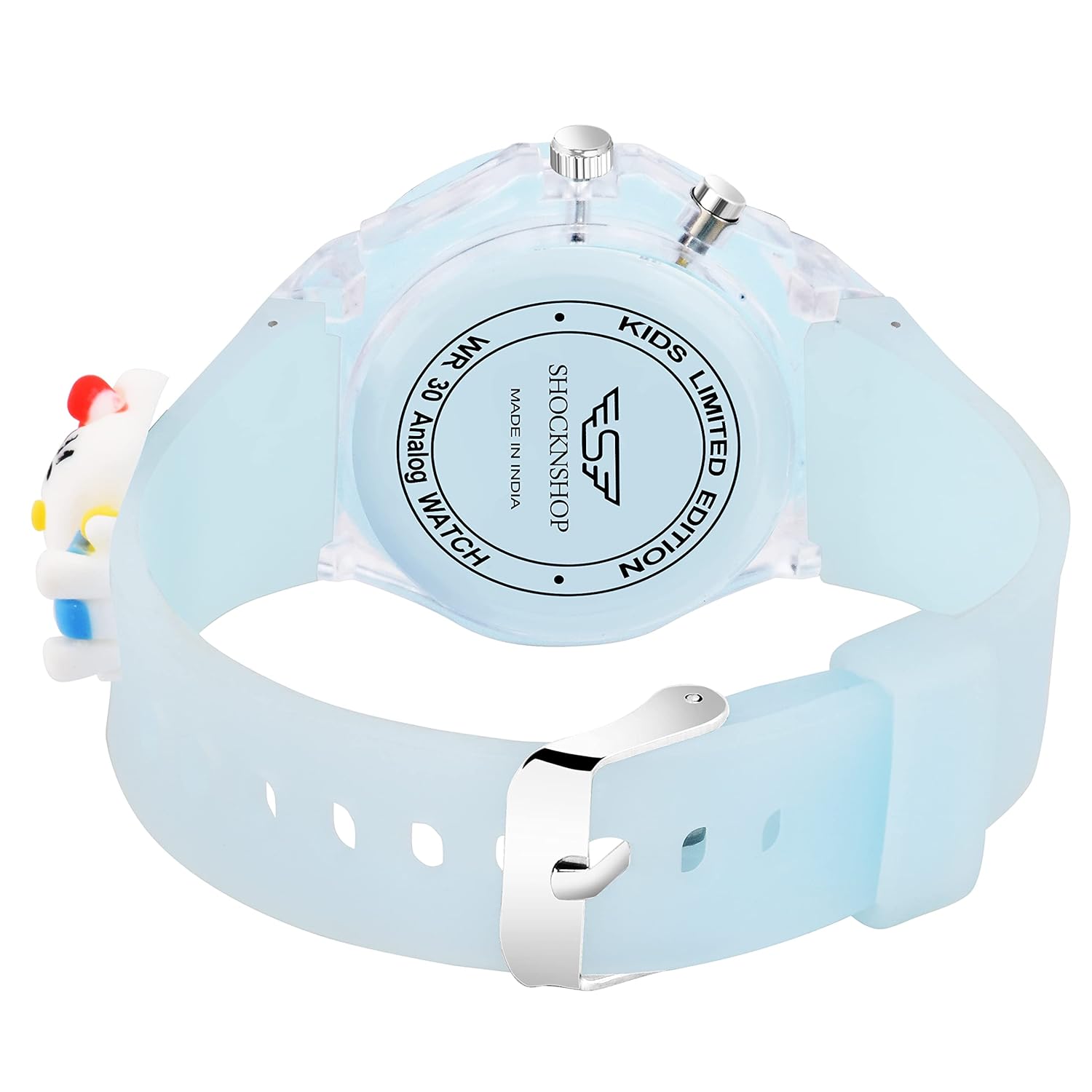 Kids cartoon collection Watch The funky design on this Shocknshop watch is unique and attracts instant attention. This analog watch for kids has plain Three hands on a Multicolor, round-shaped dial. quartz movement, a back casing that is made of Plastic and a crown to adjust the time. the strap is multicolored and has a comfortable buckle clasp closure. With Amazing Cartoon Character Let them Play With This Colorful Time Piece.