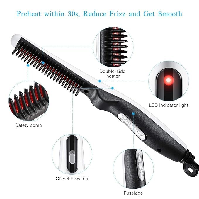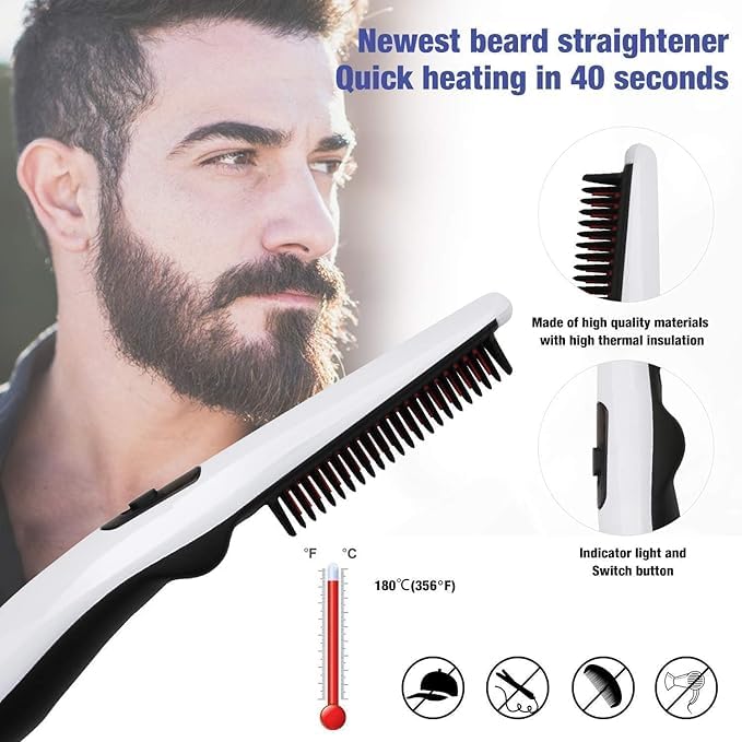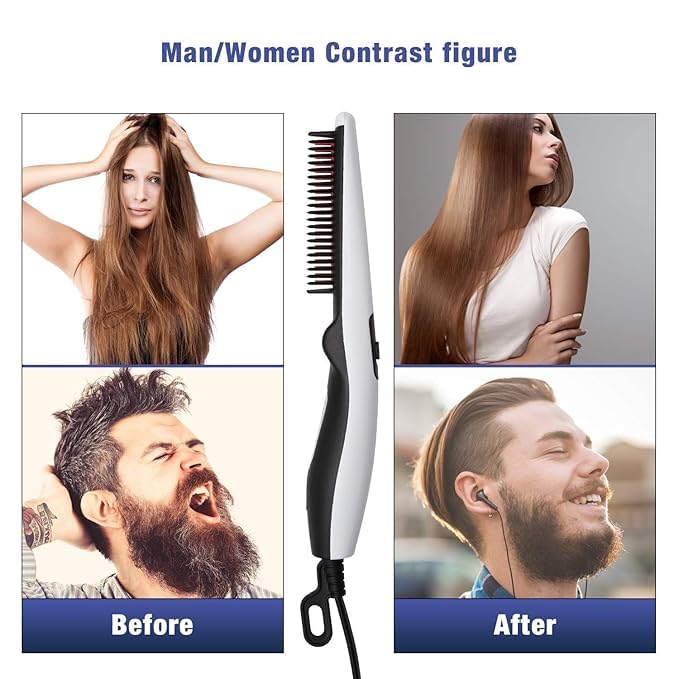 Multifunctional: This electric hair styler can straighten beards, massage hair, and curl locks with its dual-purpose design.