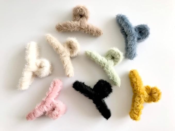 shopyidol Women Aesthetic Large Fur Hair Claw Clips, Korean Style Hair Clutchers For Thick/Thin Hair.(Pack Of 1), Multicolor