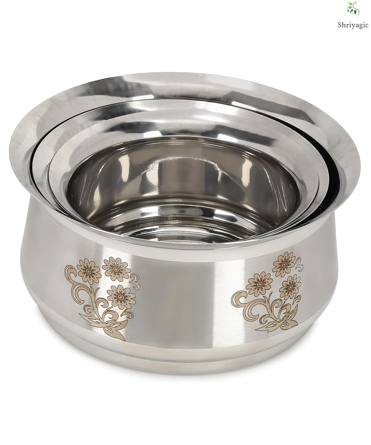 Shriyagic Stainless Steel Handi Set – Cookware with Stylish Floral Design for Elegant Cooking