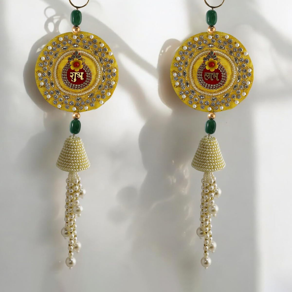 ✅ Sales Package: 2 Piece Shubh Labh Jhuki Hanging – ideal for toran for main door, pooja room decoration, festive home decor, and gifting purposes.