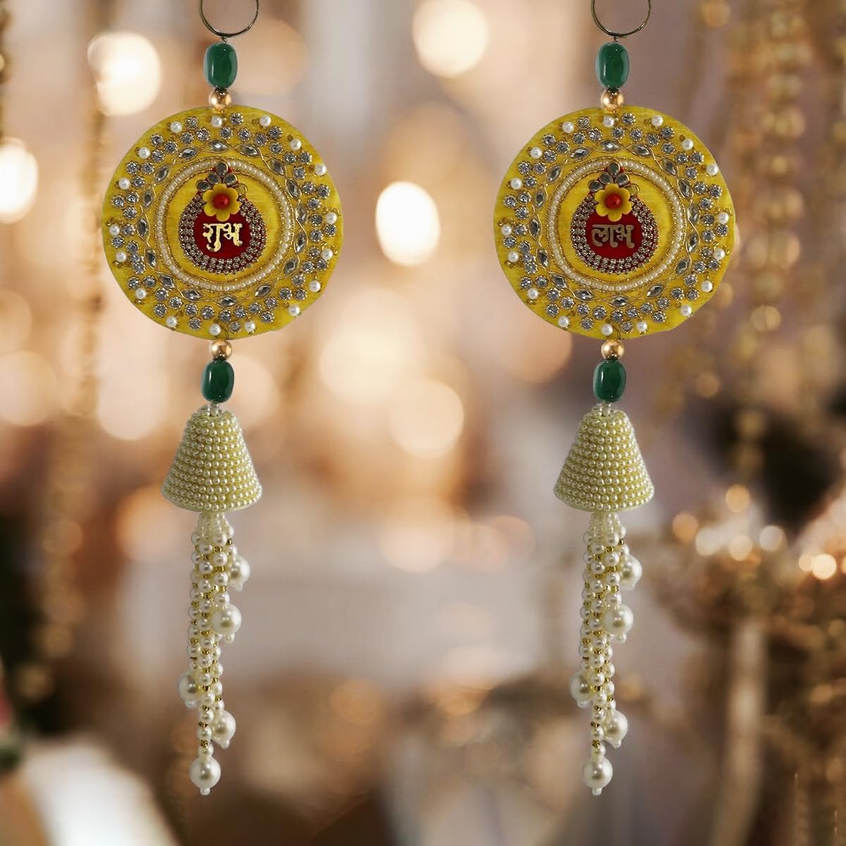 ✅ Premium Materials Used: Handcrafted with Golden Beads, MOP Latkan, Yellow Flowers, Shubh Labh Charms, Green Jade Tumble Beads, and MOP Caps for a vibrant, elegant, and durable festive decoration.