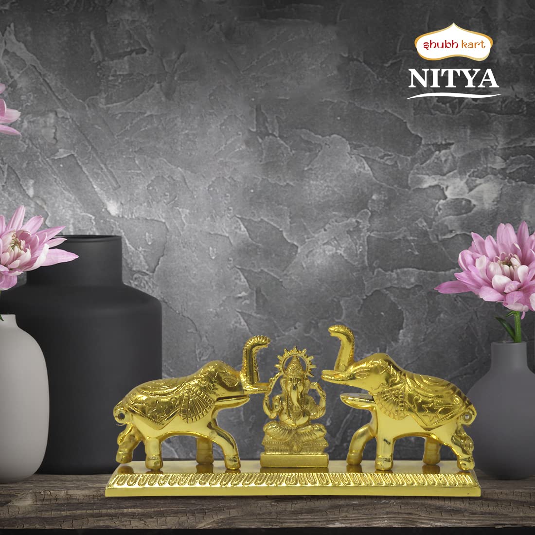 TRADITIONAL GANESH IDOL WITH PUJA ELEMENTS: This beautifully crafted 6.6 cm showpiece includes Lord Ganesha with twin elephants and compartments for chandan, roli, haldi, and kumkum an all-in-one spiritual accessory for pooja.