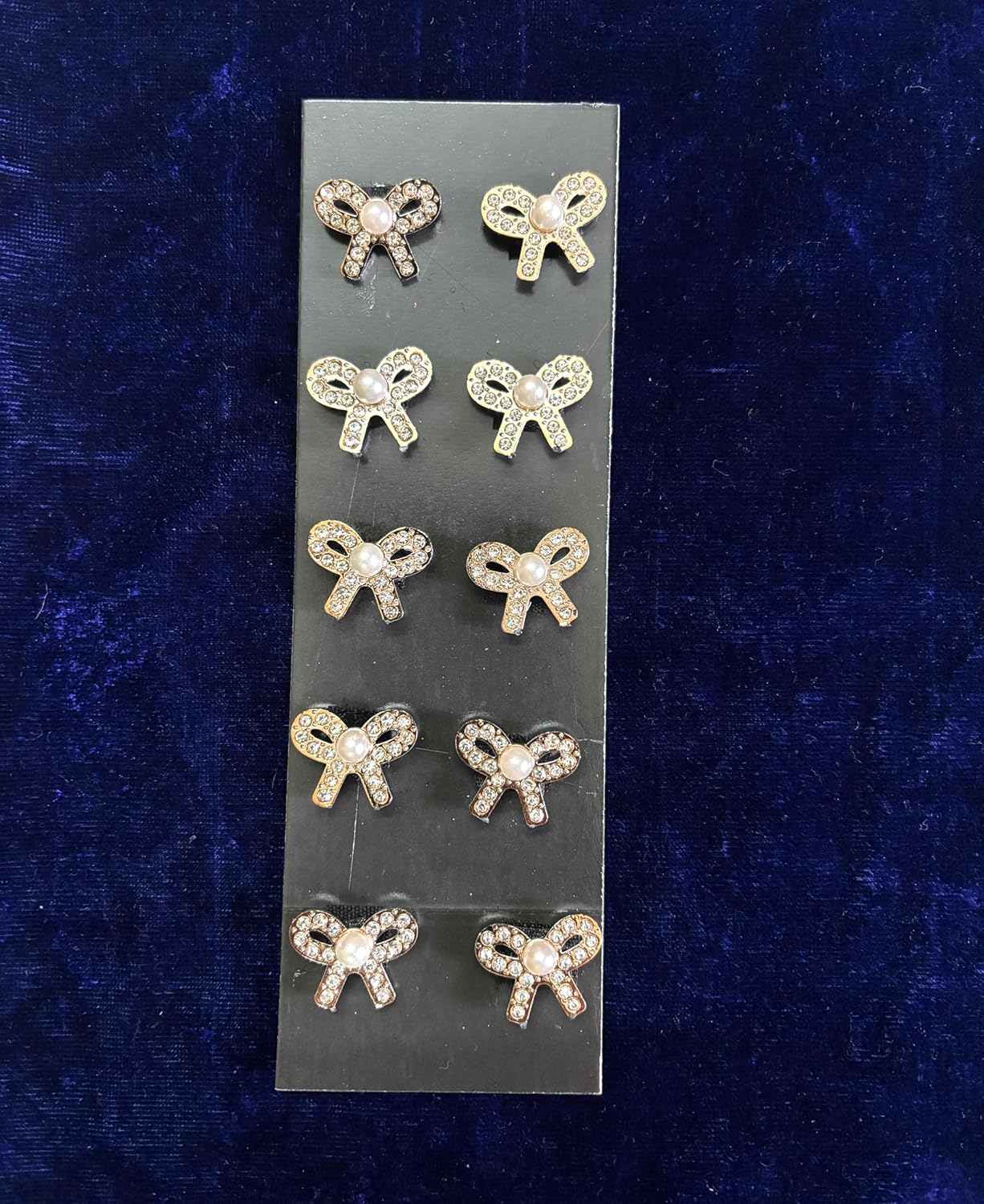 Sidhav 10 Pc Premium Hair Golden Bow Sticker Pearl Stone Hair Clips Decorative Hair Accessories Hair Style Bridal Brooch & Braid (Pack Of 10)