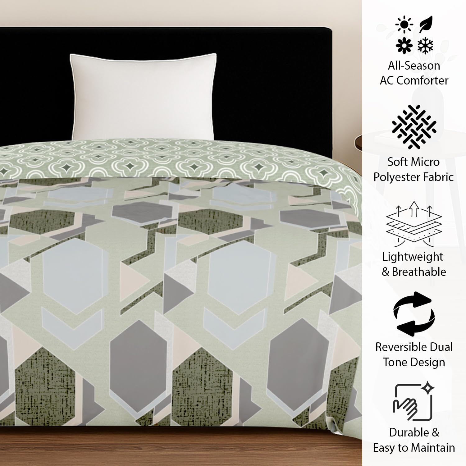 PACKAGE CONTENT: 1 Piece AC Reversible Comforter Set Single Bed (60×86 Inch)