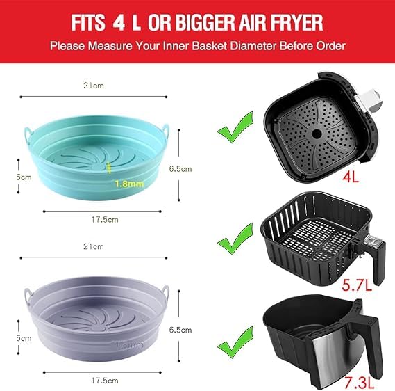 The silicone liner’s versatile bowl shape makes it suitable for various air fryer models.