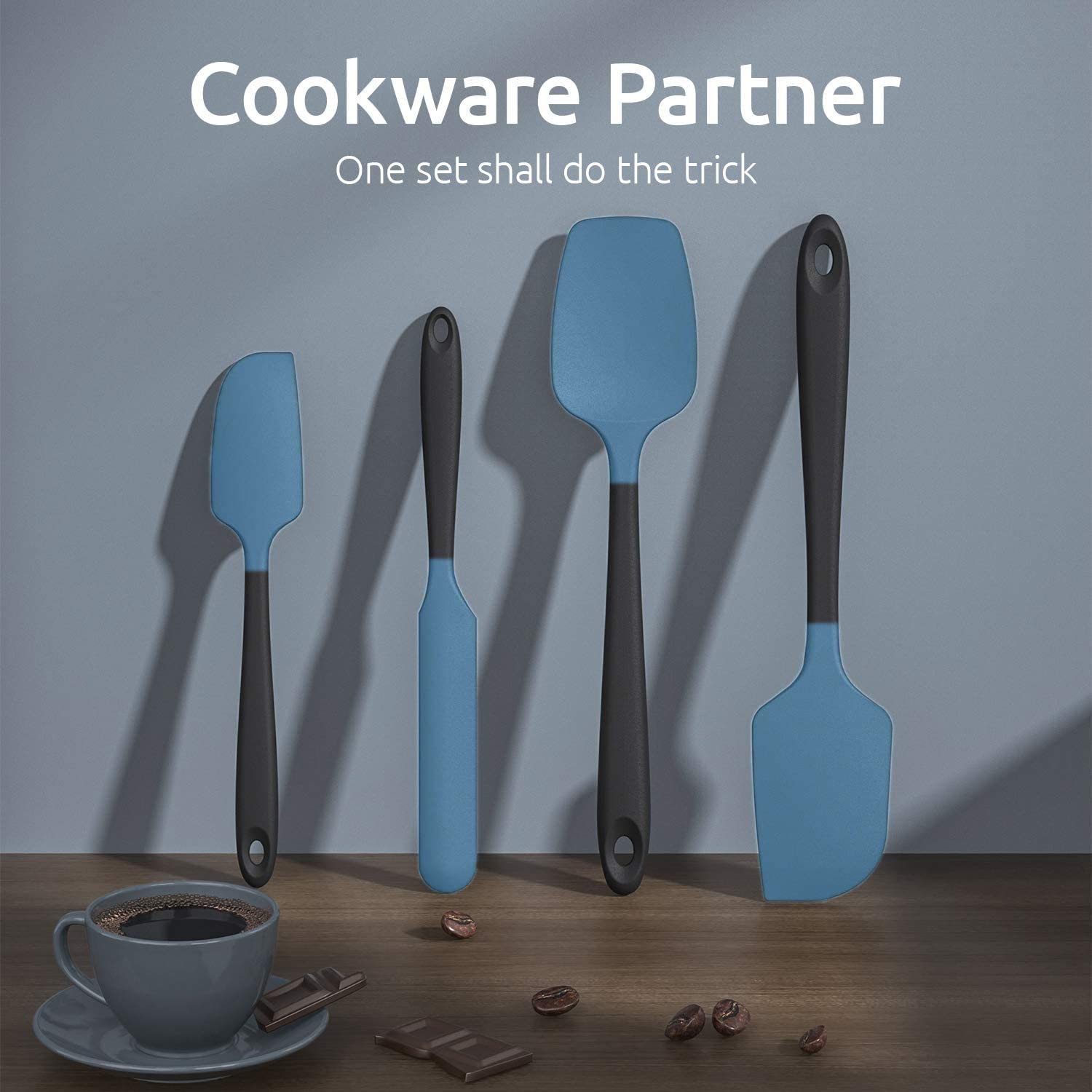 Silicone Spatulas Set of 4 for Baking, Cooking and Mixing, Heat Resistant, Non Stick, Strong Stainless Steel Core Inside(Blue,Set of 4)