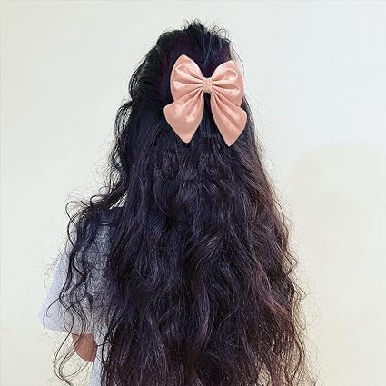 Silky Satin Hair Barrettes Shade Bow Clip for Women | Bow Hair Slides Metal Clips French | Barrette Long Tail Soft Plain Color Bowknot Hairpin Holding Hair (Pack of 5 Random Color)