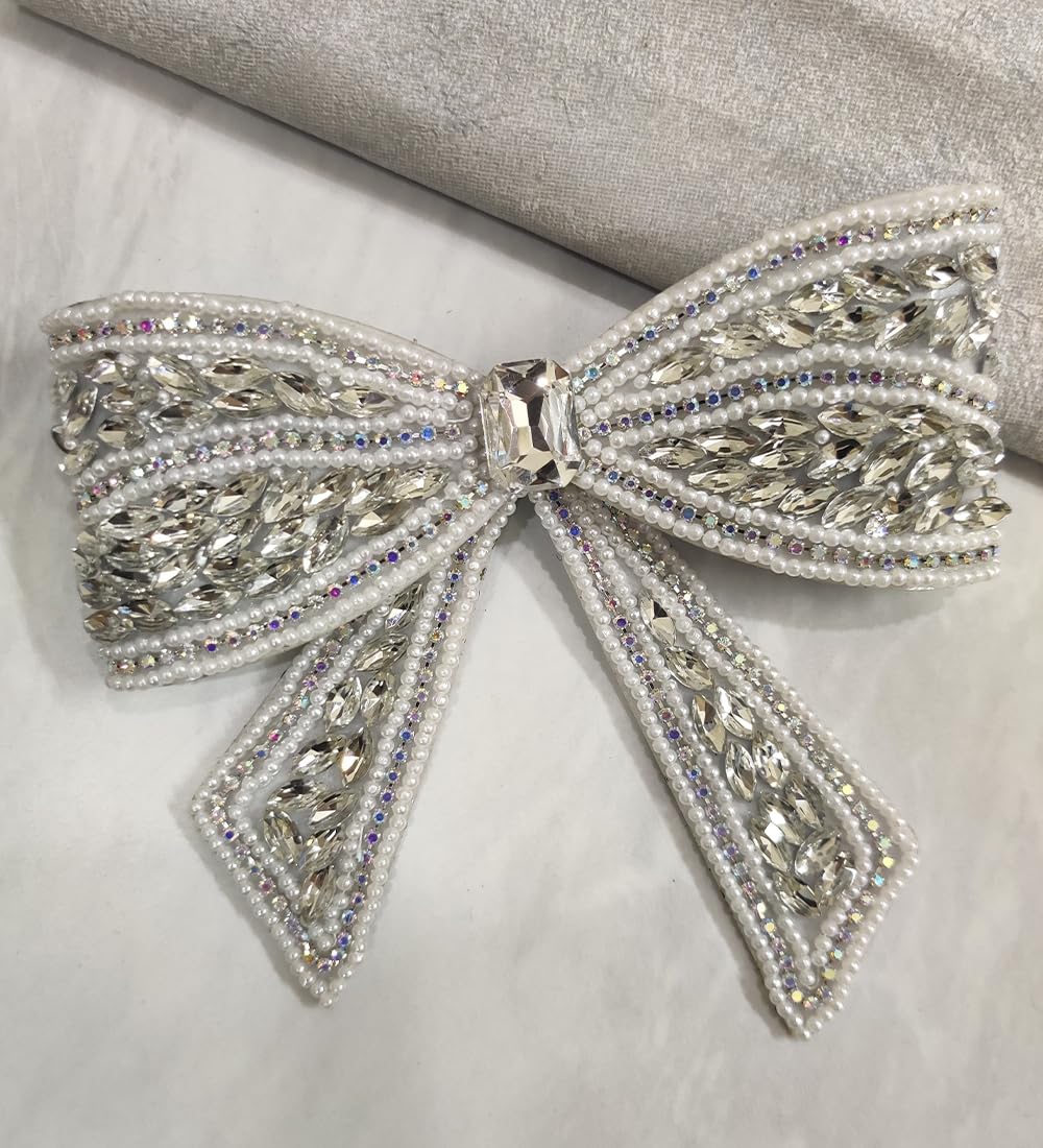 Silver Big Embellished Crystal Hair Bow | Bridal Hair accessories |Fancy Hair Clips for girls