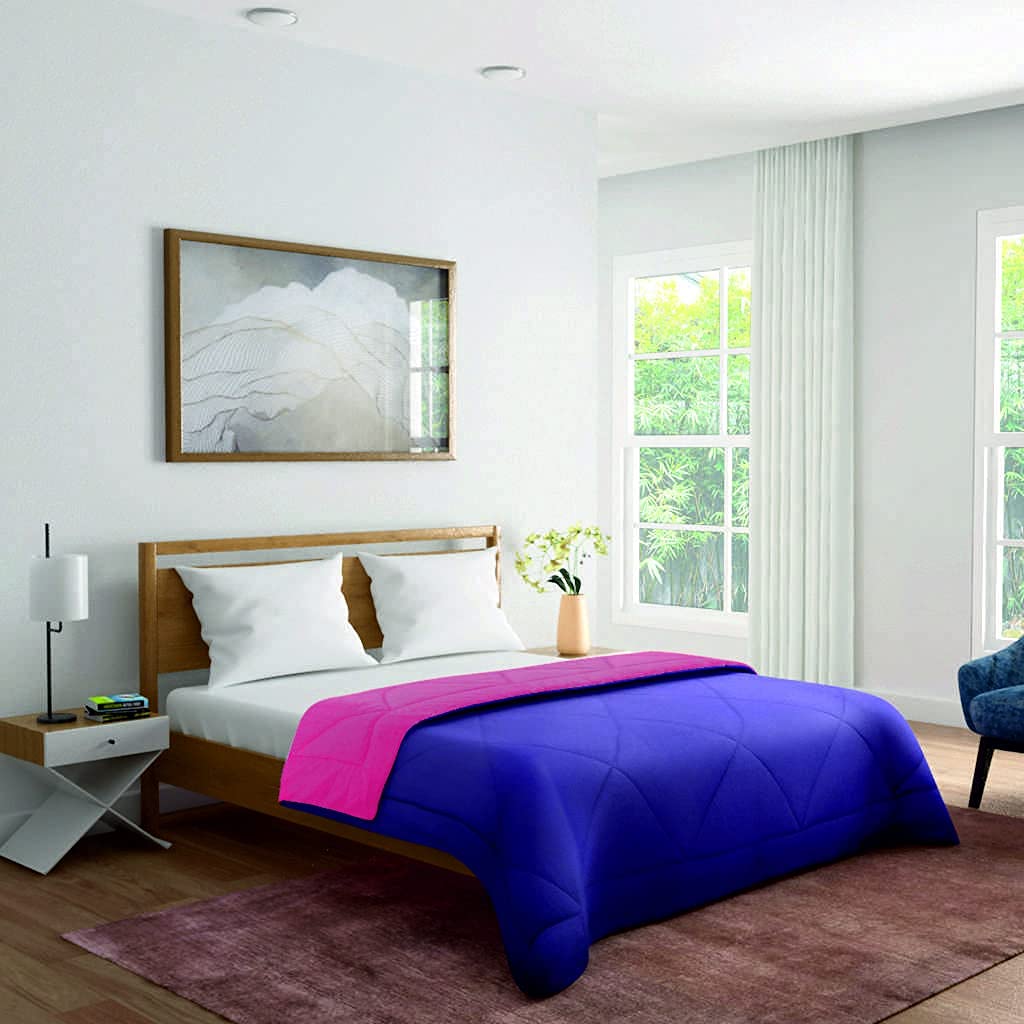 Single Comforter| All Season Solid Reversible Comforter | Dohar, Blanket Single Bed, AC Comforter Single Bed | Hypoallergic Microfibre (200 GSM,Purple & Pink)