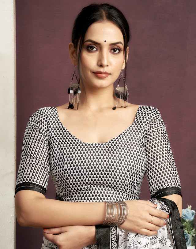 SIRIL Women’s Bagalpuri Silk Saree | Varli Printed Saree With Unstitched Blouse Piece