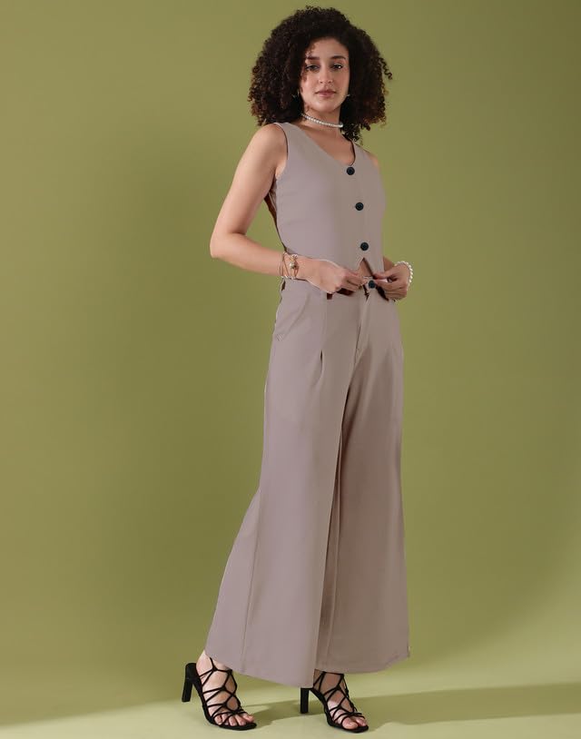 SIRIL Women’s Co-Ord Set Regular Fit Crop Top And Pant Set | Two Piece Co Ord Set | Formal Cord Set For Women