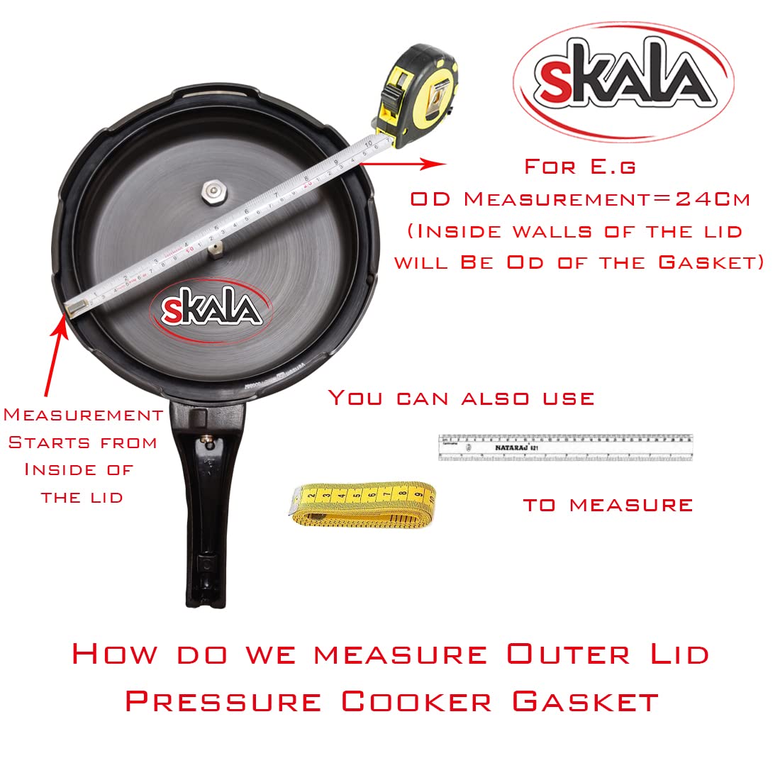 SKALA is a Brand where you find perfectly suitable Rubber Nitrile Synthetic Round Gasket Ring for all leading Brands and Models. Under one roof, we provide a wide range of Rubber Nitrile Synthetic Round Gasket Ring, which can be finely fitted to all varieties of Pressure Cookers. SKALA had been through lot of research on Pressure Cooker Gasket in order to satisfy the needs of customers. For exact fitting of Gasket, it is always advisable to check the dimension before placing the order. Please refer the above mentioned image to measure the Pressure Cooker Gasket. The Gaskets are made up of food grade Nitrile Synthetic Rubber to accurately seal the lid and bottom of the Pressure Cooker and retains original food taste and flavor. SKALA provides a good quality Cooker gasket which is used for all Outer Lid Pressure Cooker. In case of any doubts regarding the product, please feel free to contact our customer care executive and get clarified with all your doubts about the product before placing the order.