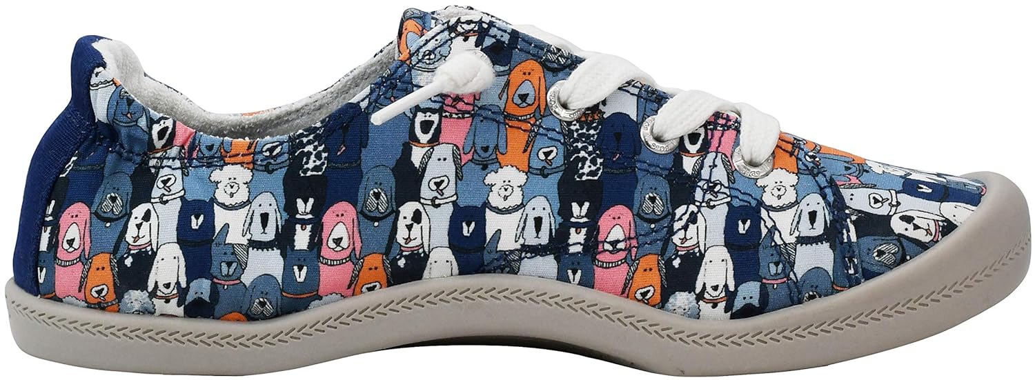 Wag Party Scrunch Back Slip On W/ Memory Foam Sock-Bobs for Dogs, Machine Washable, Memory Foam Keep those tails wagging with comfort and easy style in the BOBS from Skechers(TM) Beach Bingo – Dog House Party shoe. Soft woven canvas fabric upper with colorful cartoon dog face print design in a slip on casual comfort scrunch back sneaker with Memory Foam insole. Construction Soft woven canvas fabric upper Multi colored cartoon dog face print front panel design Cute design with different colors, breeds and expressions Slip on casual scrunch back sneaker design Stitching accents Solid color back panel Laced front with metal eyelets and knotted laces for slip on fit Elastic scrunch-back collar design for easy slip on stay-put comfort BOBS logo detail at tongue Hidden interal elastic fabric panels for easy slip on fit Soft fabric shoe lining Memory Foam cushioned comfort insole Contoured arch support design Flexible rubber traction outsole BOBS(TM) from Skechers logo detail