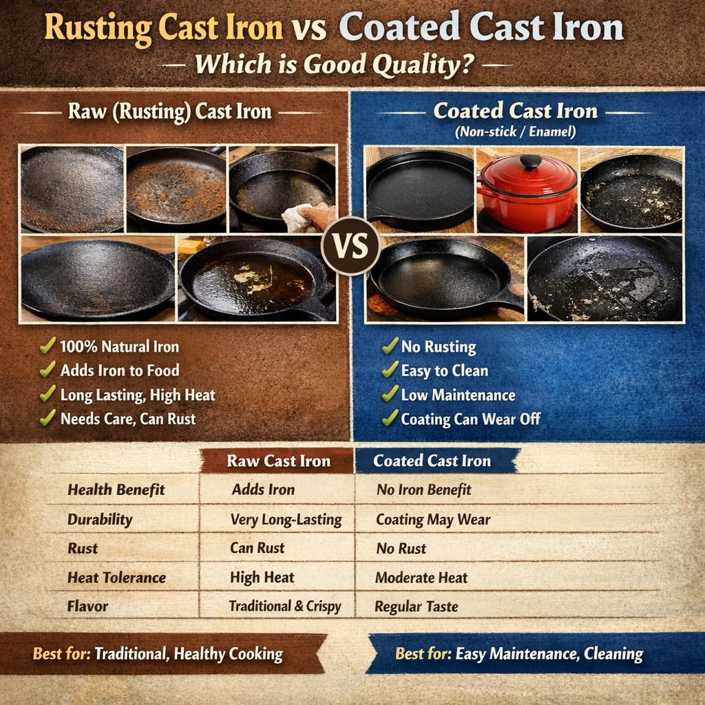 Healthy & Chemical-Free Cookware Free from harmful chemical coatings. Traditional cast iron cookware supports healthier cooking and long-lasting durability.