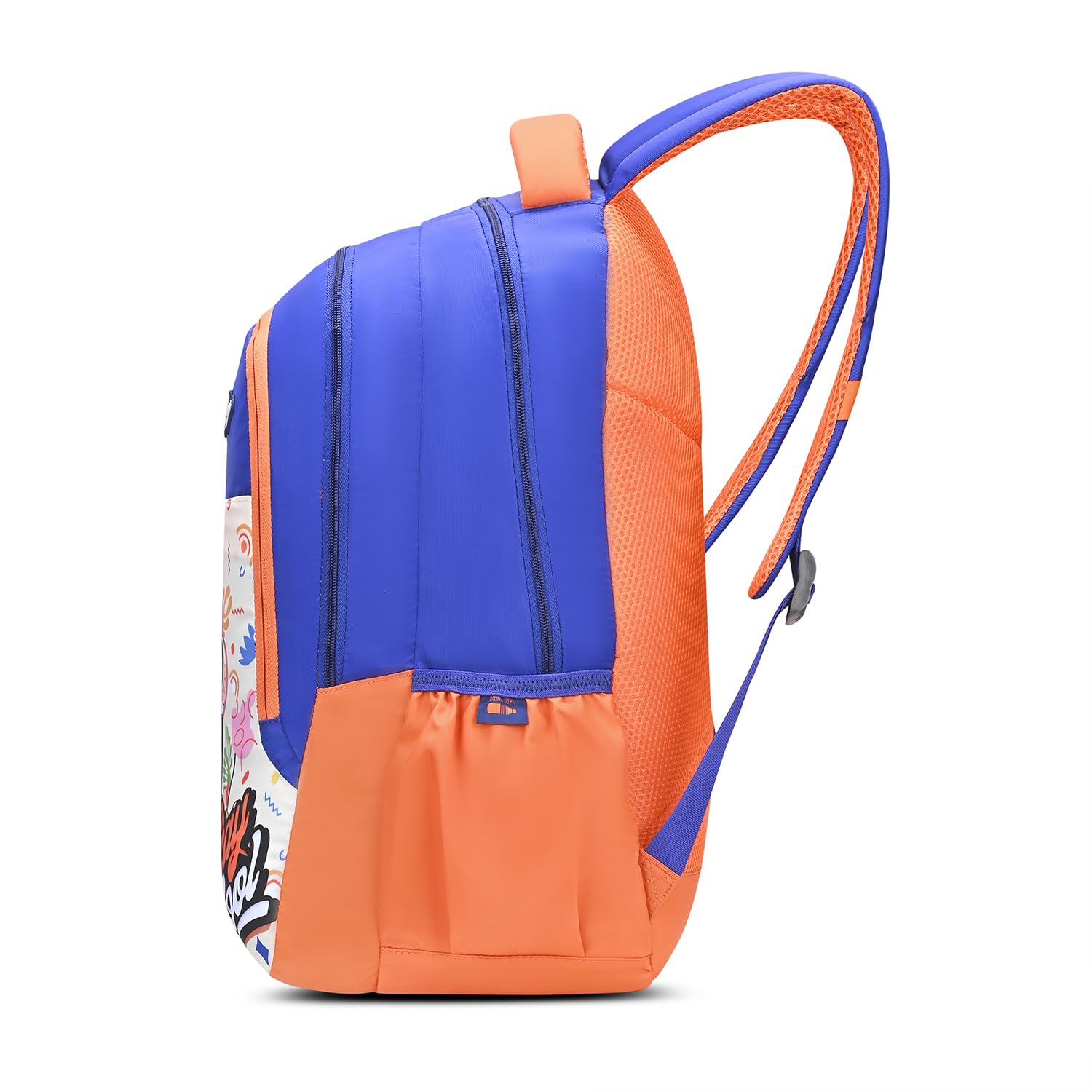 Skybags Blossom Blue Orange 36L School Bag for Girls, Backpack for Kids & Women with 3 Compartments, Bottle Holders & Air Mesh Back | Trendy Backpack for School