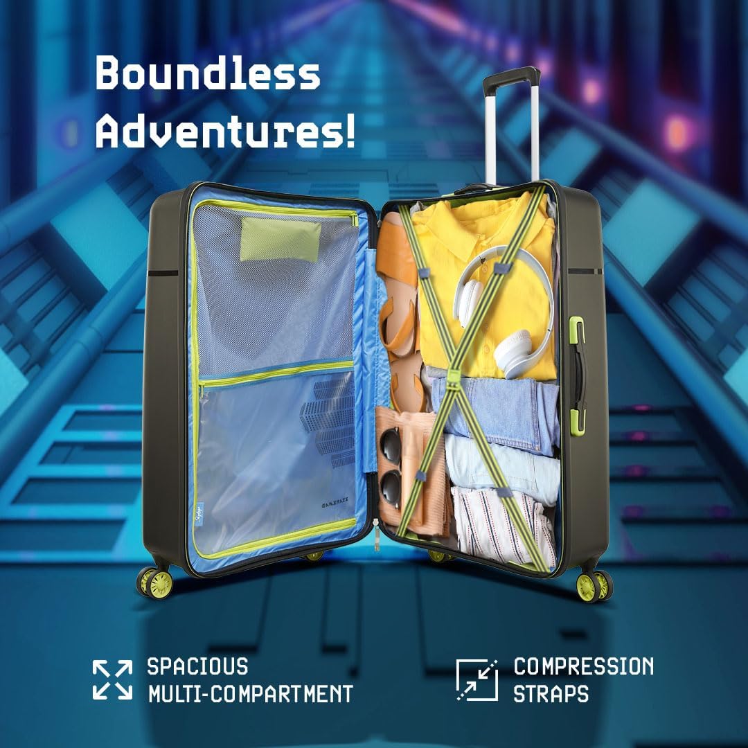 Skybags Polypropylene (Pp) Set of 3 (Small, Medium & Large) Hardshell Suitcase (57+67+79 Cm) | Luggage with 8 Spinner Wheel,TSA Lock,3D Print with Spacious Interior Luggage (Black, Set of 3)
