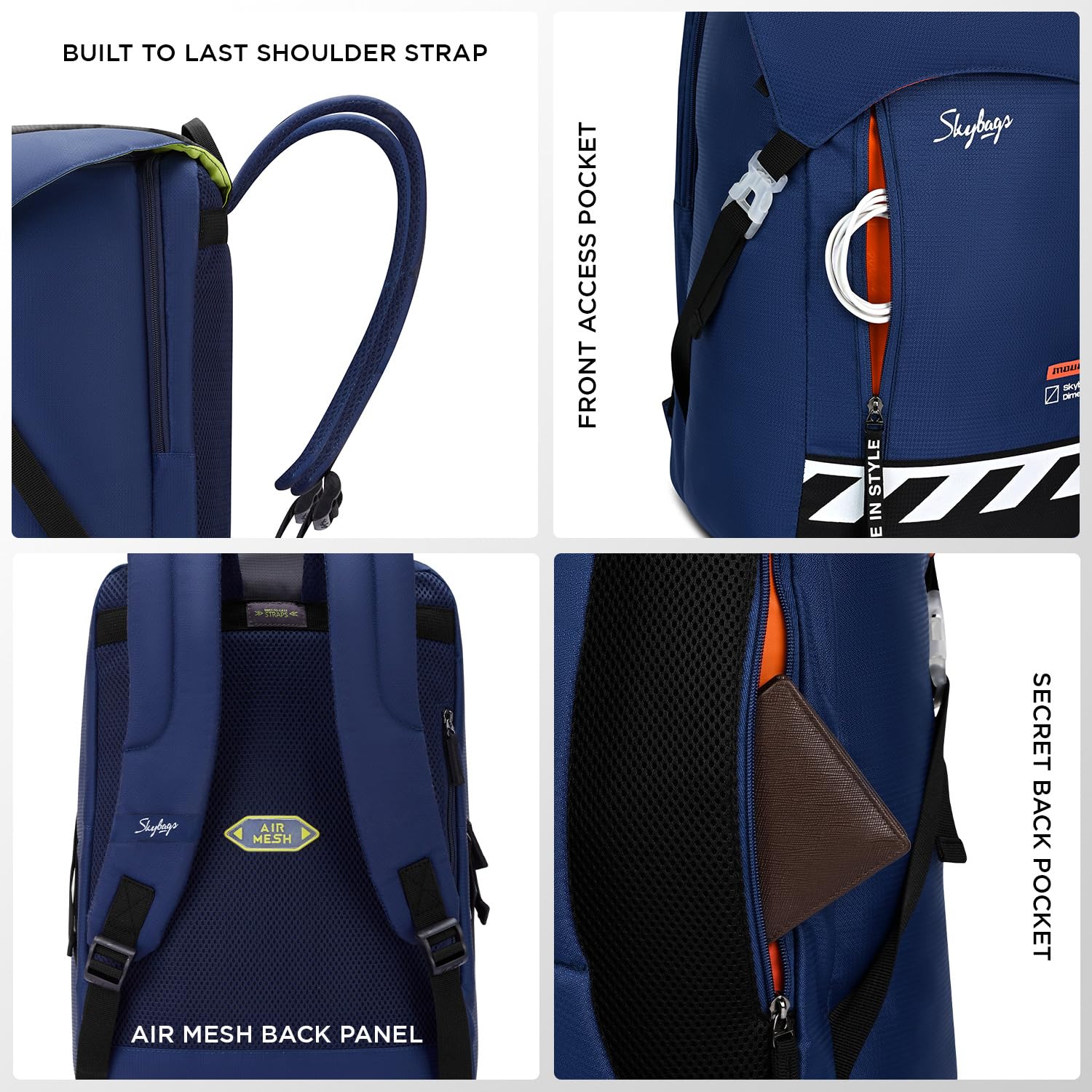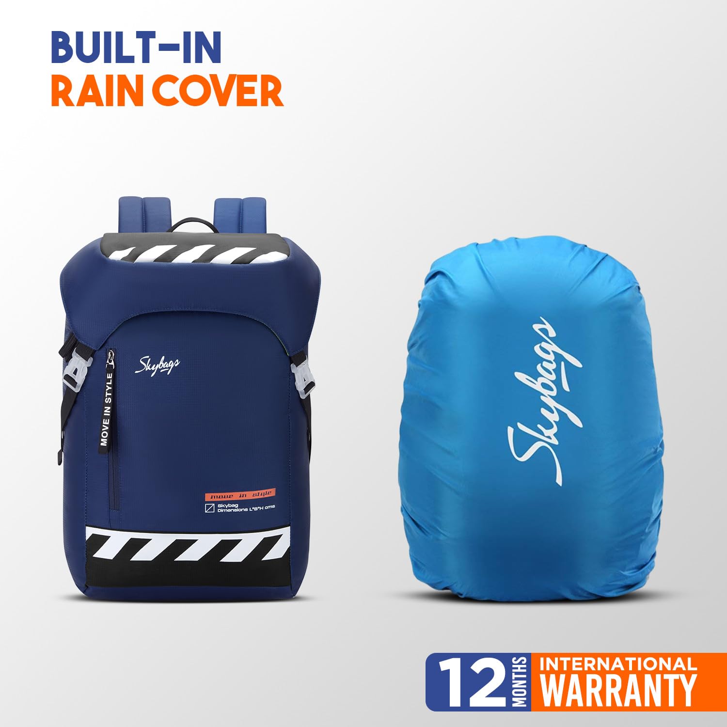 Skybags Yolo Pro 02 Casual Backpack 29 Liters with Laptop Compartment for Men & Women With Rain Cover, Padded Back & Shoulder Strap (Blue)