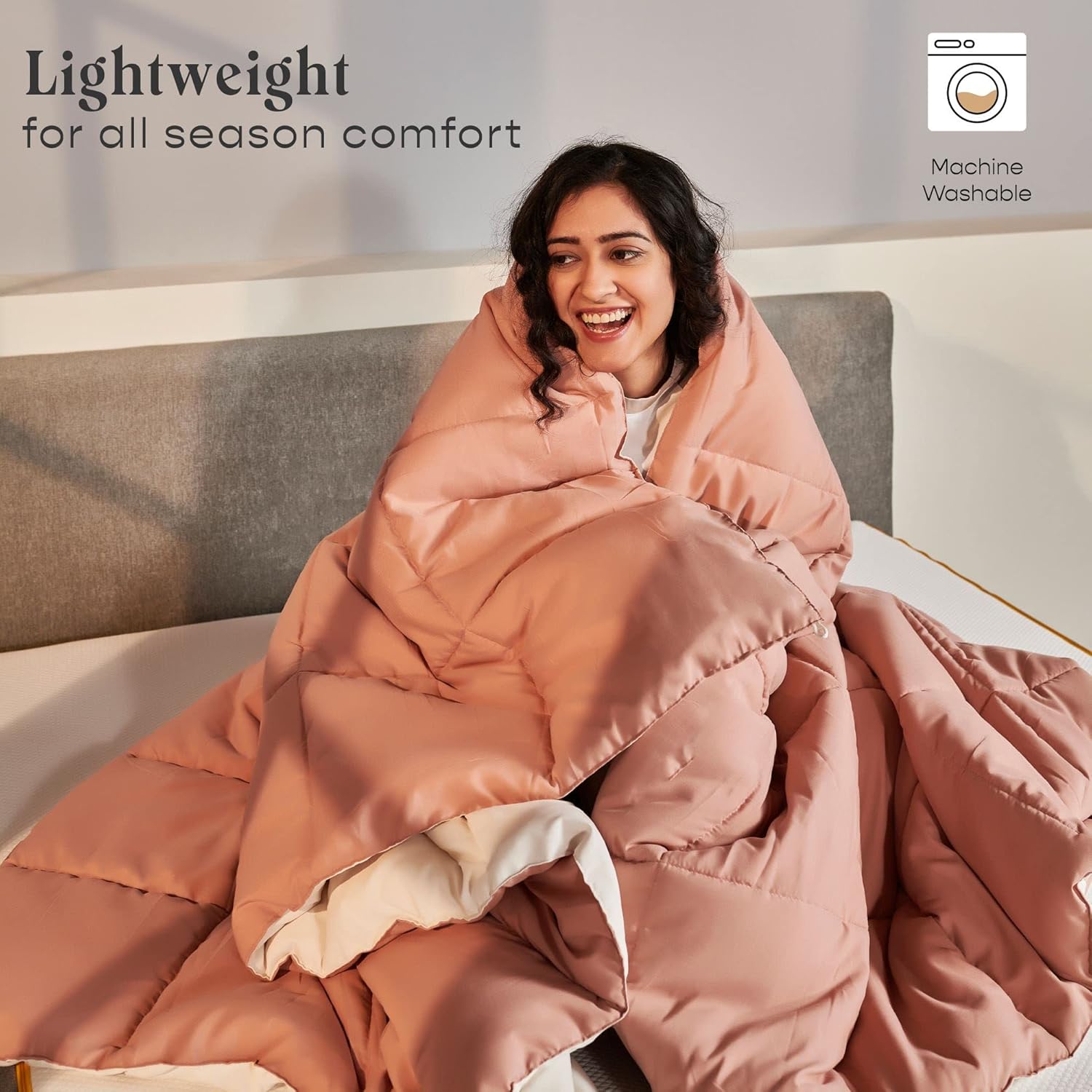 COMFORT: All season reversible comforter in quilted box design with microfiber fill and soft-to-touch fabric that’s also moisture wicking. Its an all weather comforter – suitable for winters and summers. Its so soft and fluffy, one of the best quilts for comfort.