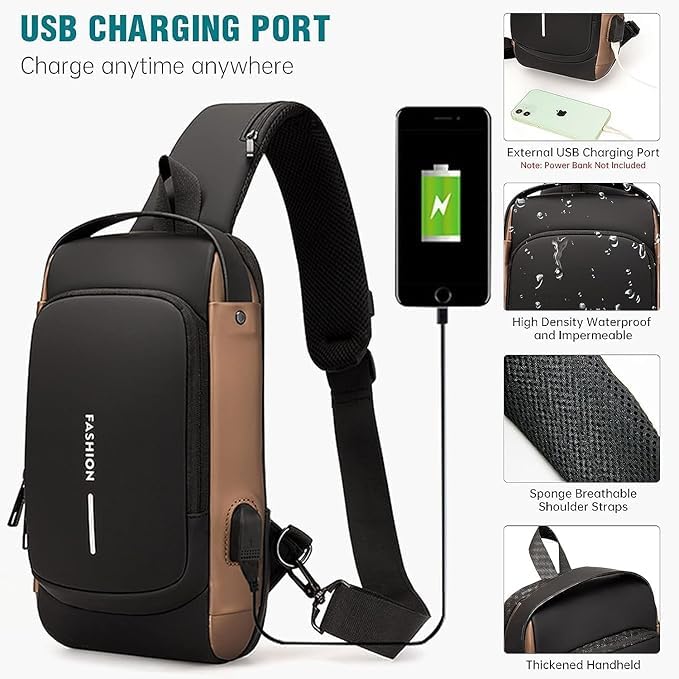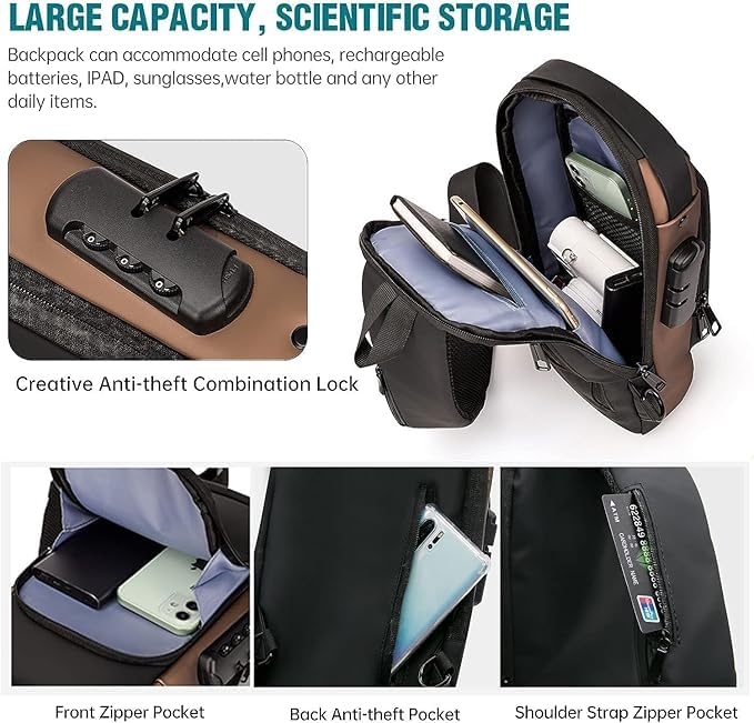 Sling Bags for Men Women, Waterproof Chest Bag, Anti-Theft Password Lock, Crossbody Backpack, Small Flex Shoulder Bag for Hiking, Cycling, Travel