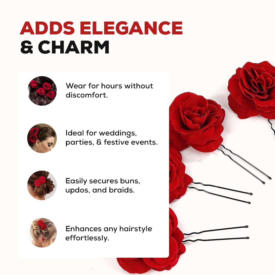 [𝐒𝐓𝐘𝐋𝐈𝐒𝐇 & 𝐄𝐋𝐄𝐆𝐀𝐍𝐓 𝐃𝐄𝐒𝐈𝐆𝐍]: Multibrite small red rose design is perfect for women who want to add a romantic and sophisticated touch to their hairstyle. Whether you’re attending a wedding, a party, or just styling your hair for a casual day, this accessory will elevate your look with ease.