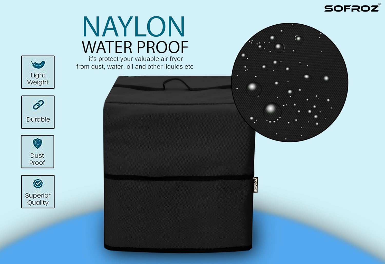 SOFROZ Air Fryer Top Cover with 2 Storage Pockets for Faber 6L – Dustproof & Waterproof, Washable Protective Cover for Kitchen Appliances Faber 6L (Black)