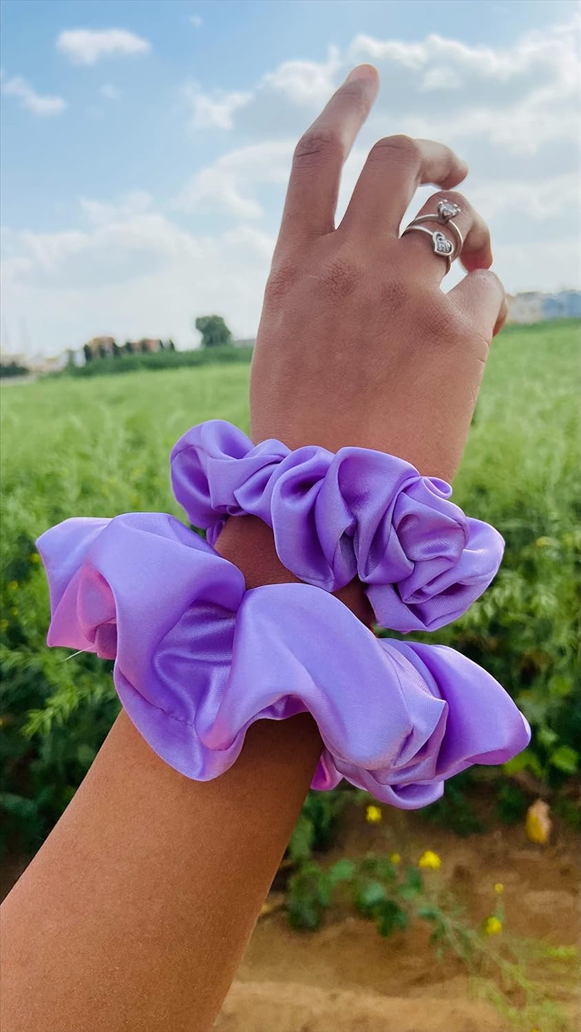 Soft Silk Satin Scrunchies Hair Ties Anti Hair Breakage Organza Floral Multi Color Hair Scrunchy Tie Bun Best Gift Hair Accessories Fashion For Women Girl (Regular, Purple)