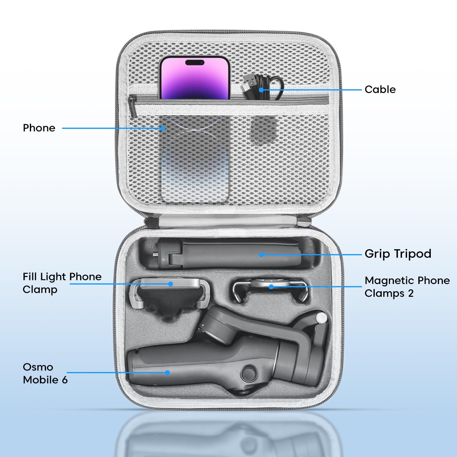 ✅【Custom Fit for DJI Osmo Mobile 6】– This storage bag is exclusively designed for the DJI Osmo Mobile 6 gimbal stabilizer and its essential accessories, including the grip tripod, magnetic phone clamp, hand strap, extension pole, bicycle clamp, and data cable. Keep everything in one secure and organized place.
