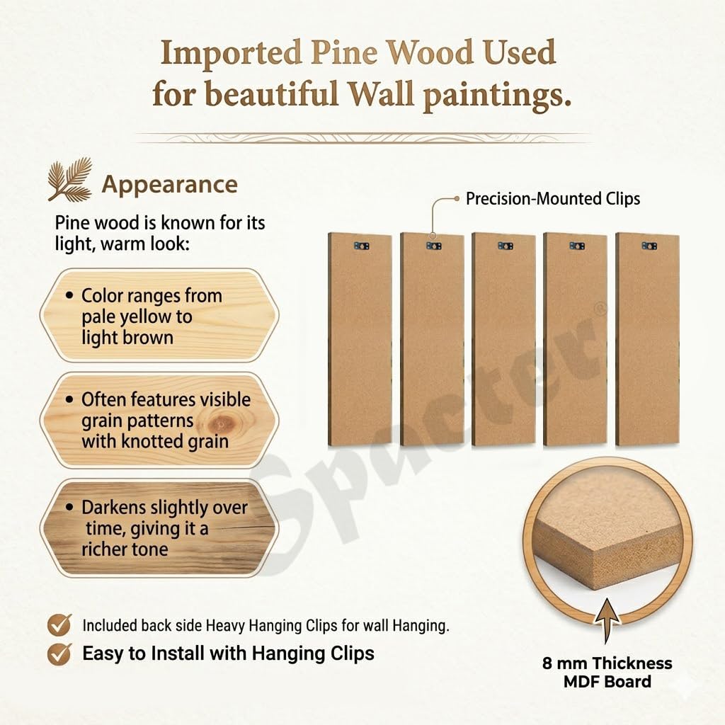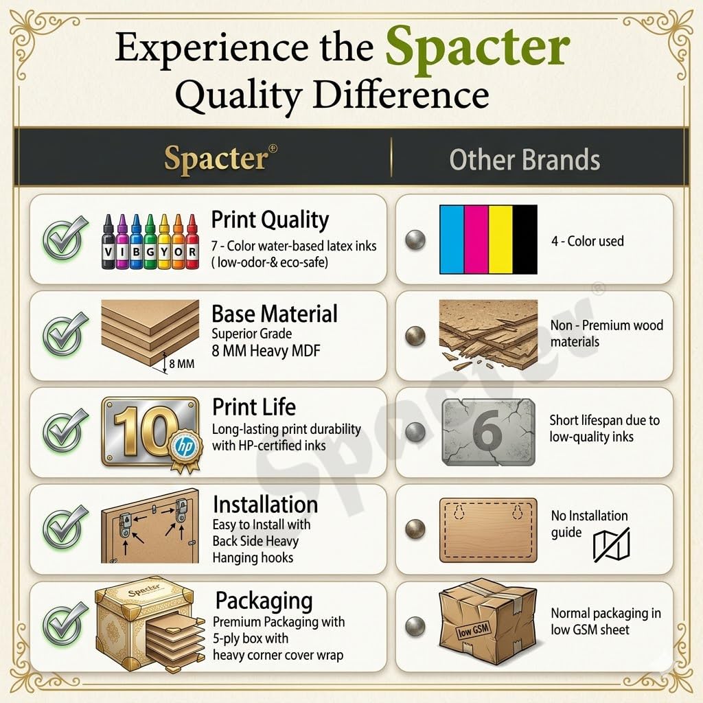 Premium Wooden Base and Lamination: Art panels are framed with Branded Heavy 8 MDF of Grade A quality, providing a solid foundation for longlasting wall decor and Sparkle matte lamination protects prints, making them waterresistant, nonfading, and easy to clean with a soft damp cloth.