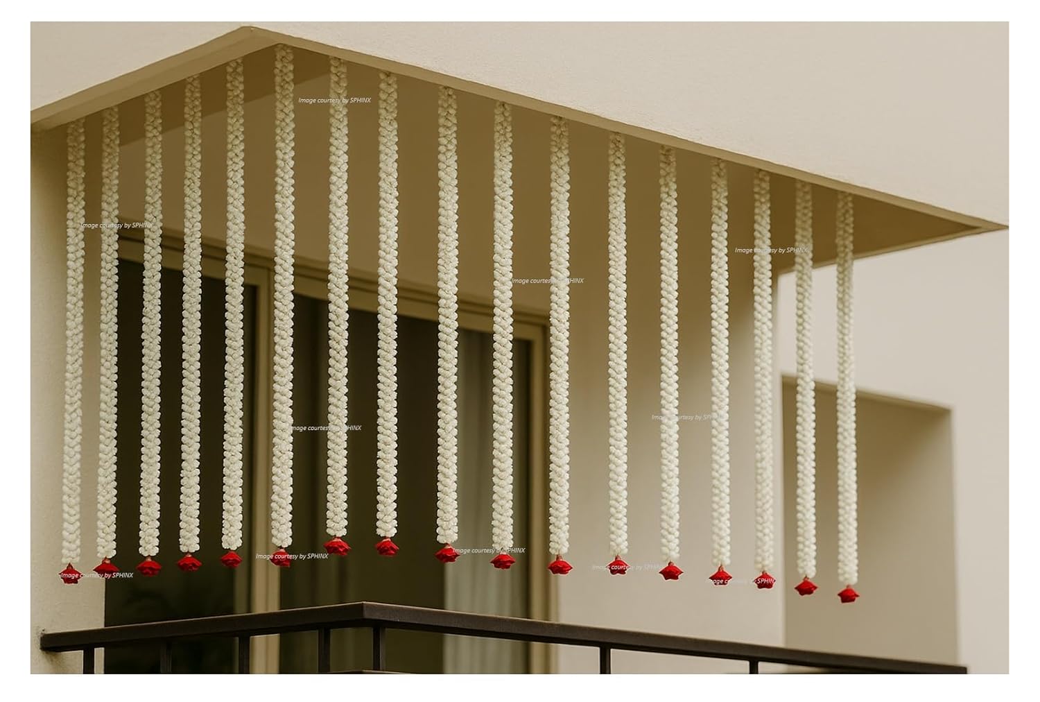 These strings can be used for making ceiling fall floral lines, railings, floral canopy , shamiyana and mandap front/back drops , mezzanine hall decors etc. The strings are re-usable, washable, re-fixable.