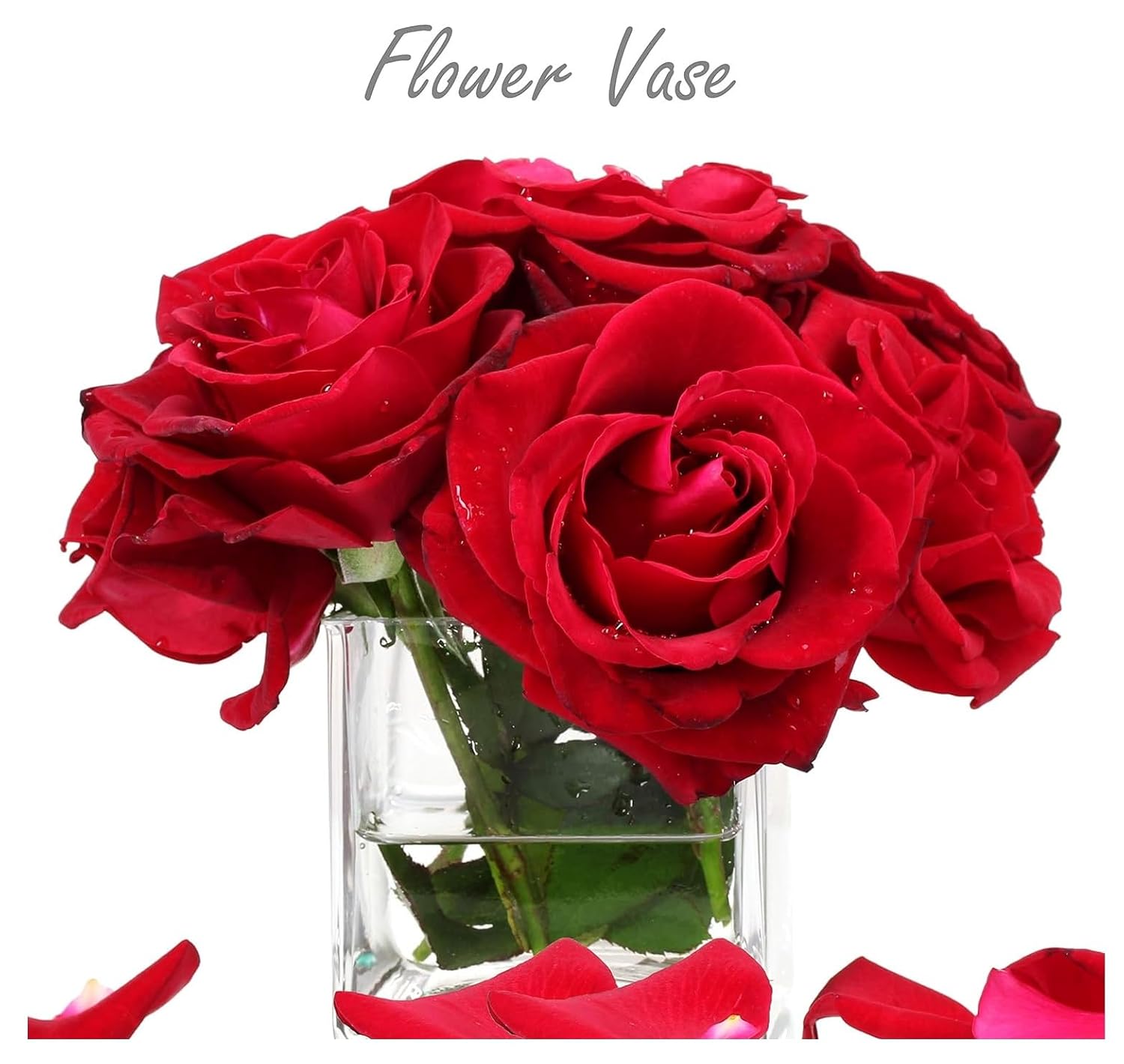 Shape – Cube/Square Shape || Material – Glass, Dimension-LxBXH – 4x4x4 Inches or 10x10x10 cms || ||Functional Decor: Whether showcasing vibrant flowers, lush plants, or standing alone as a focal point, this versatile vase is perfect for enhancing home decor, office environments, and various tabletop settings.