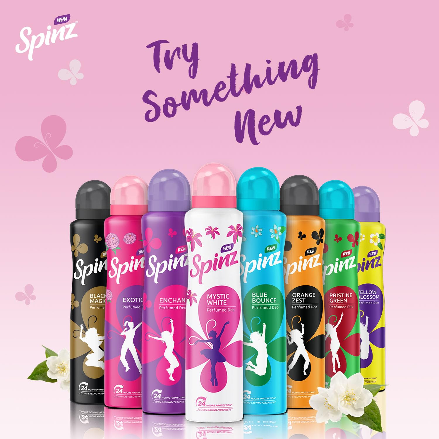 New Spinz perfumed deo gives you a refreshing blend of unique floral fragrance notes.