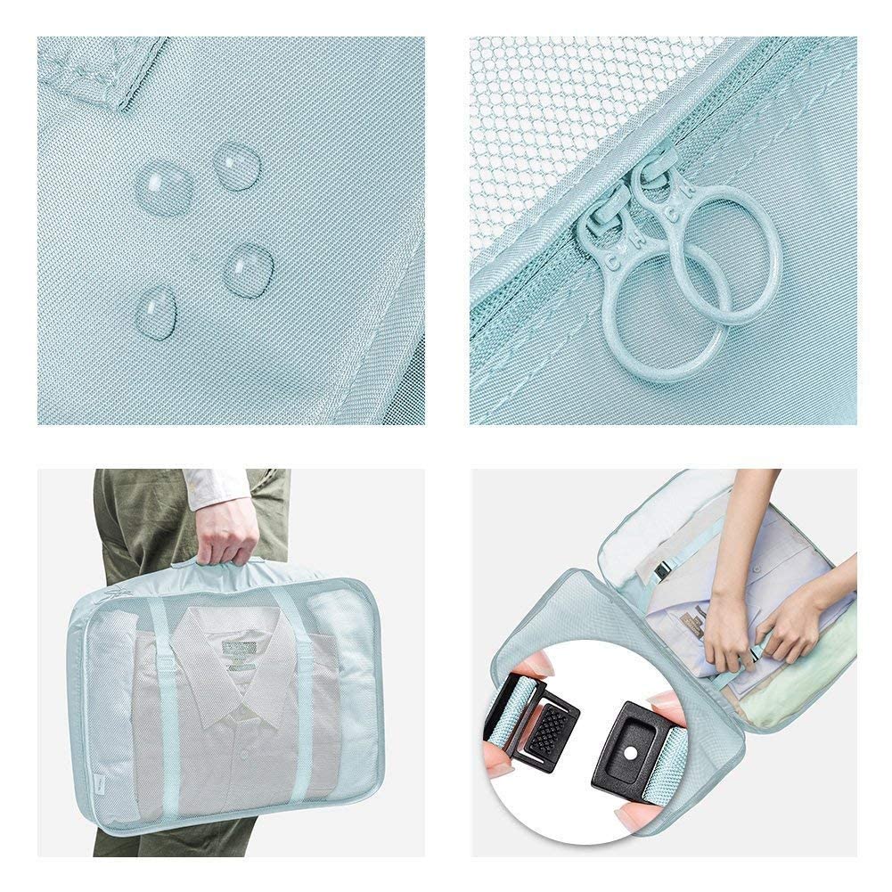Sprqcart Polyester 7 Set Travel Organizer Bag 3 Packing Cubes + 3 Pouches + 1 Toiletry Organizer Bag (Skyblue, 27.99 Cm, 11 Cm)