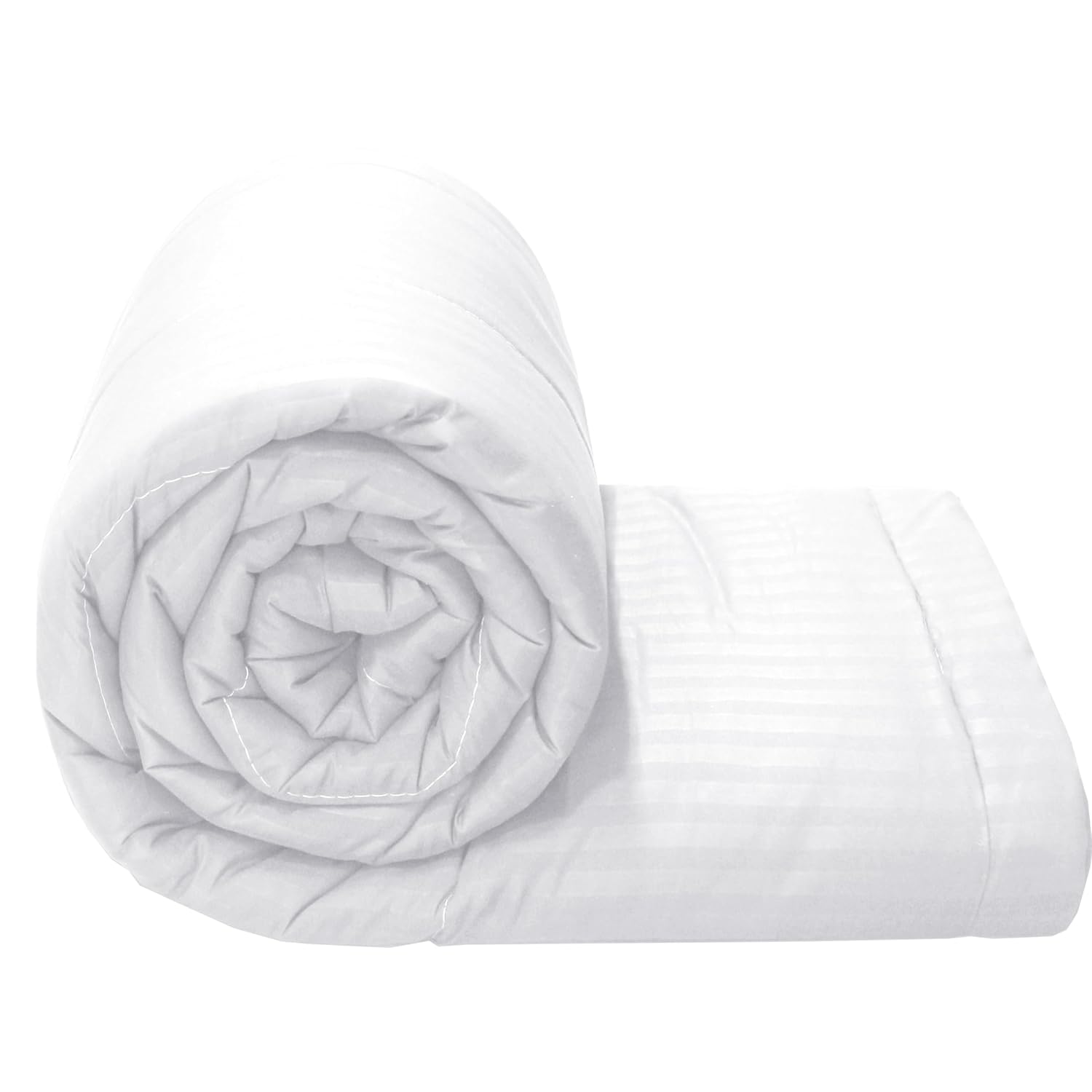 Package Contents: 1 Plain Satin Stripes Double Bed AC Comforter Filled With Ultra-Soft Microfiber with 1 Same Design Bedsheet and Two Pillow Covers- 4pc Comforter set/Bedding set For Hotels-Guest House-PGs-Home etc.