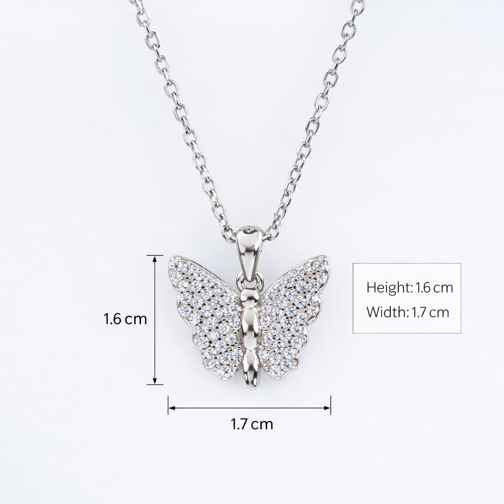 Sterling Silver 925 Butterfly Pendant with Cubic Zirconia, Rhodium Plated Jewellery for Women