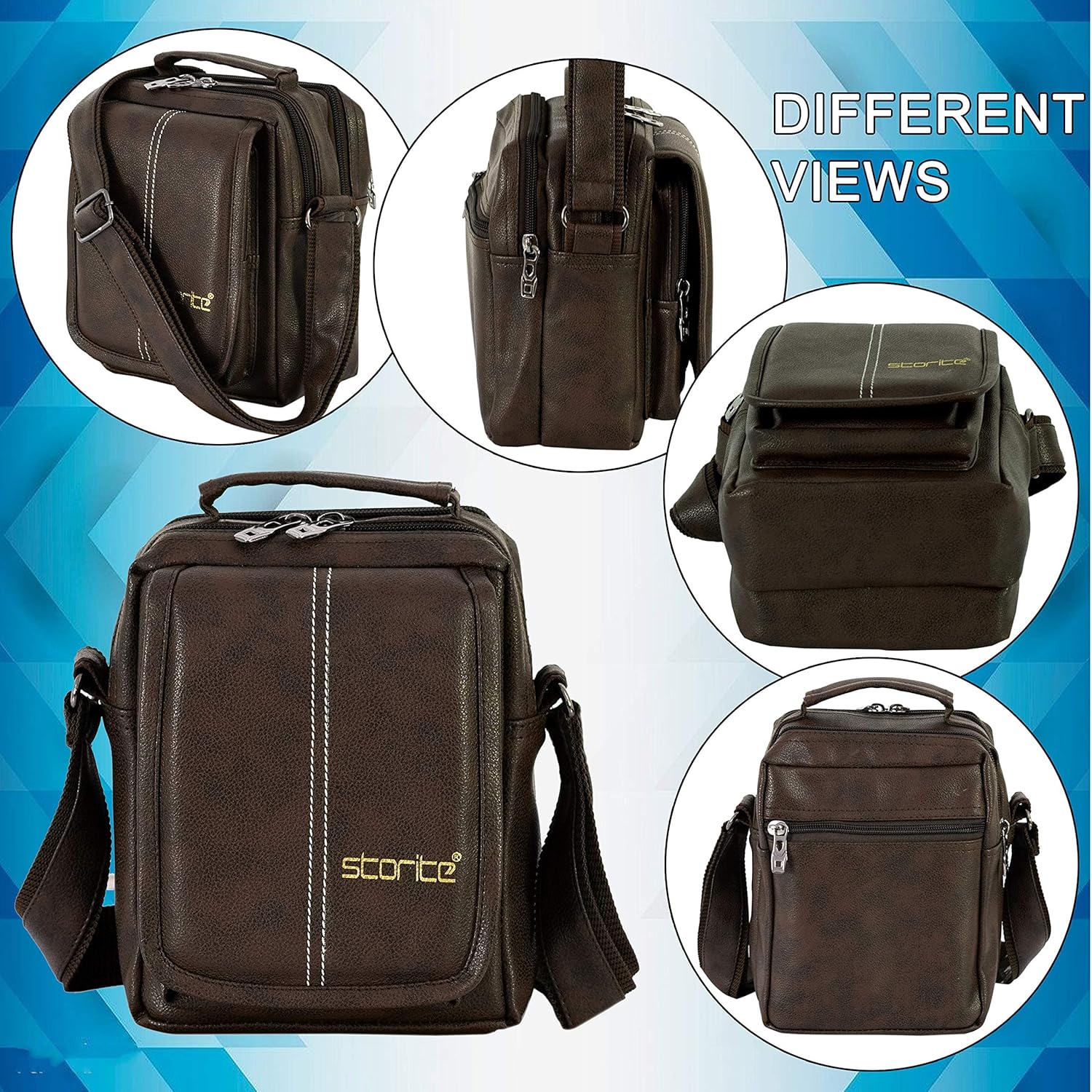 The video showcases the product in use.The video guides you through product setup.The video compares multiple products.The video shows the product being unpacked. PU Leather Mini Sling Bag Brown Merchant Video