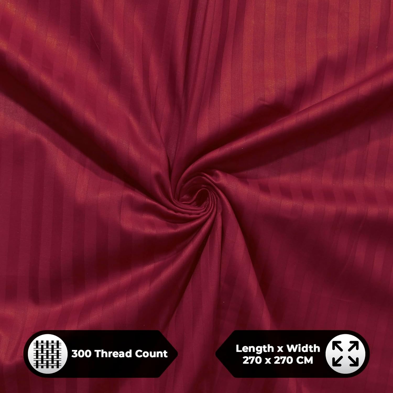 Package Contents: 1 King Size Bedsheet With 2 Pillow Covers | Dimension (size) : King Size Bedsheet : 270 X 270 Cm Or 108 X 108 Inches, Pillow Cover : 46 X 69 + 5 Cm Or 18 X 27 + 3 Inches | 300 Tc | Pattern : Satin Stripes | Material : 100% Cotton | Color : Cherry Red | Story@Home cotton bedsheet for king size bed made from premium cotton fabric offers superior softness and long-lasting comfort. Satin bedsheet king size is ideal for everyday use