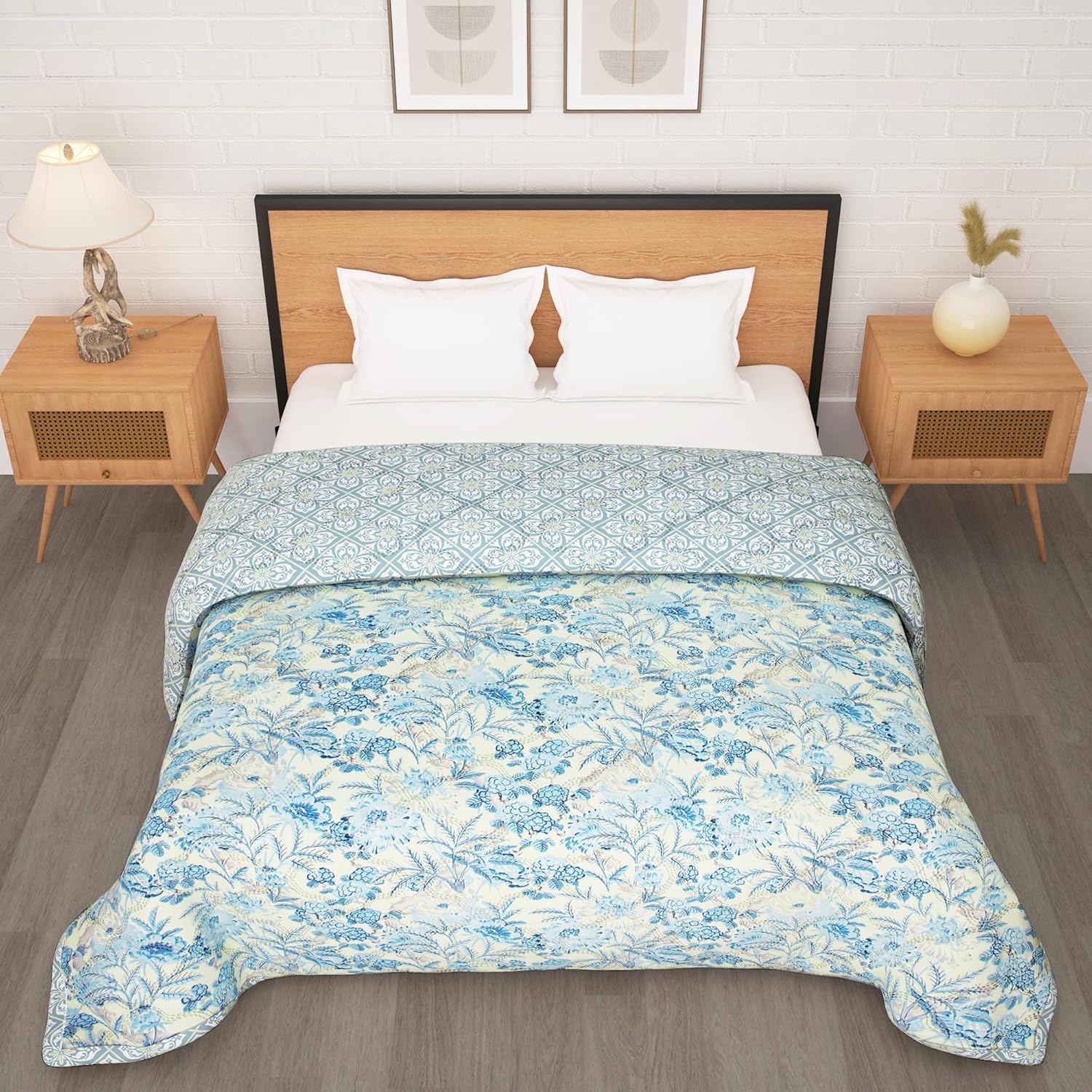 This versatile Microfiber blanket is ideal for various bed sizes. Stylish Cream & Blue razai comforter Reversal design of Double quilt. It is perfect dohar & quilt/blanket . It can be used as AC blanket Double bed, Double bed comforter for winter | warm blanket for winter | duvet Double bed | quilt for winter | making it perfect rajai Double bed for winter needs. Ideal as Double comforter for baby blankets newborn 0-5years , soft blanket for winter sets. Also try our bedding set with comforter