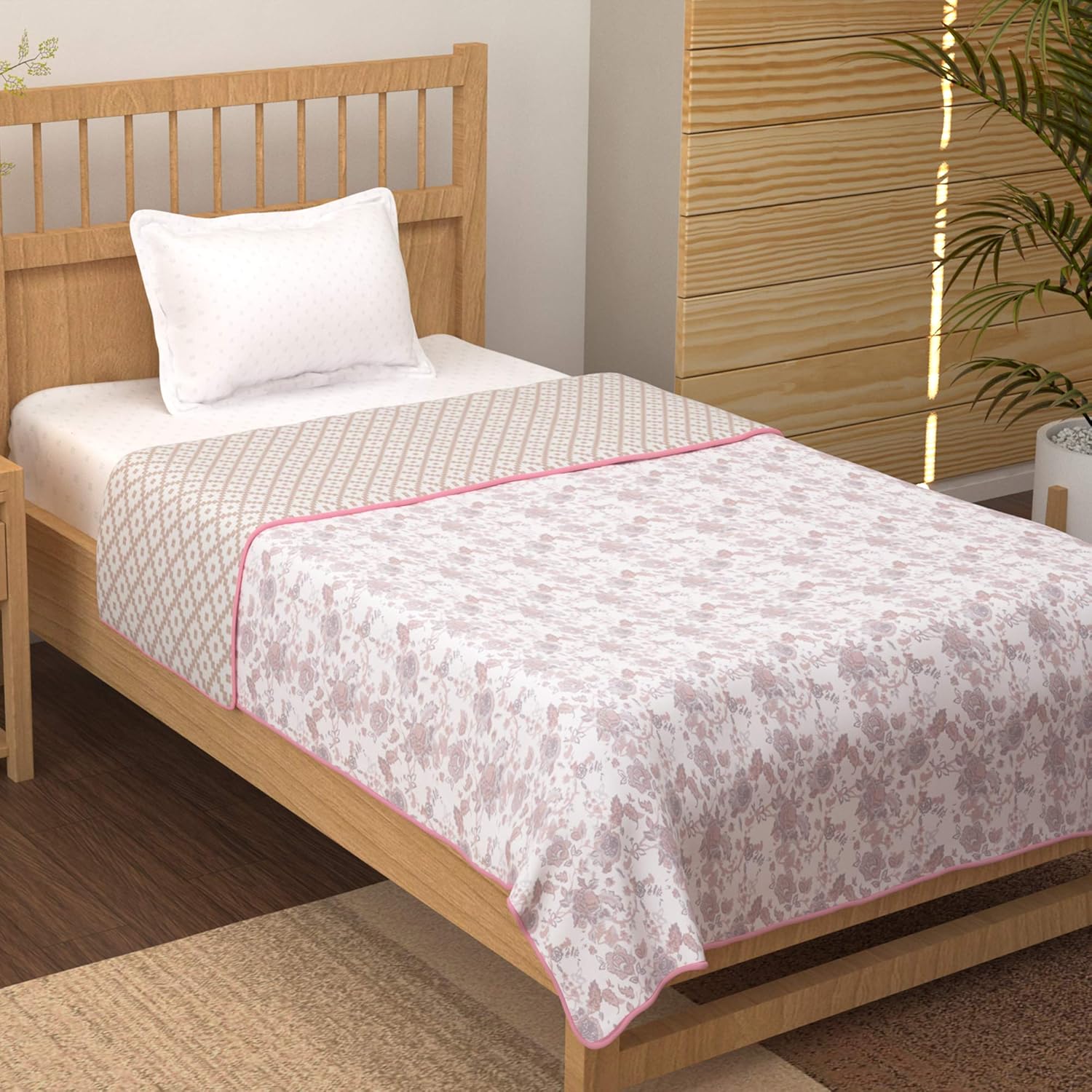 Perfect blanket single bed for winter : Story@Home Offering blankets single bed | single bed comforter | Quilt single bed | This Duvet single bed is for all weather comforter blanket. Providing soft & cozy bedding blanket single size | 144 x 220 cm, 56 X 86 inch | Pattern: Floral | Color: Baby Pink & White | The color combination adds versatility. Ideal blanket for kids, warm blanket & festive gifting, Our comforter for winter ensures warmth & an essential for your baby comfort & Peaceful sleep