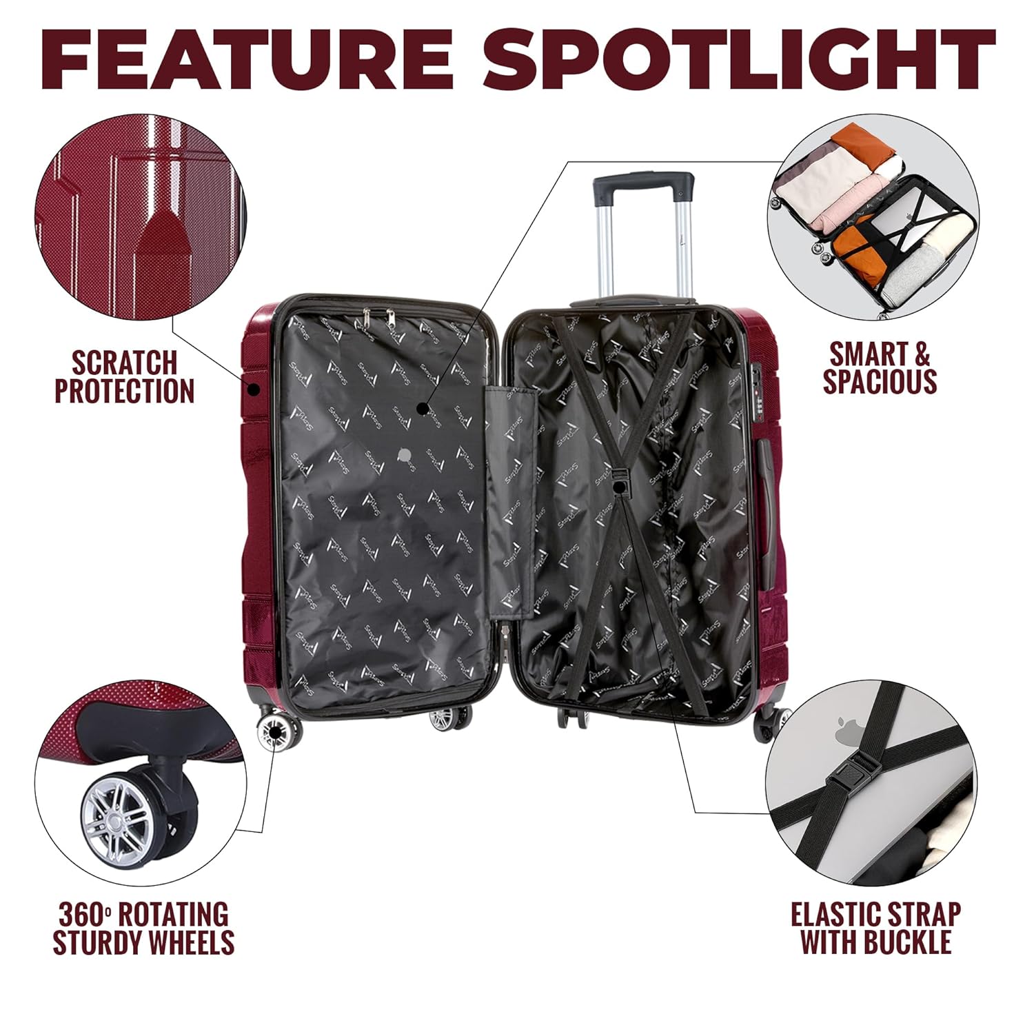Experience zero hassle and smart lifting with a scratch-protect exterior that keeps your luggage look brand new. The anti-slip pads provide extra stability, ensuring a secure grip while handling. Designed for convenience and durability, these suitcases enhances style & ease of use