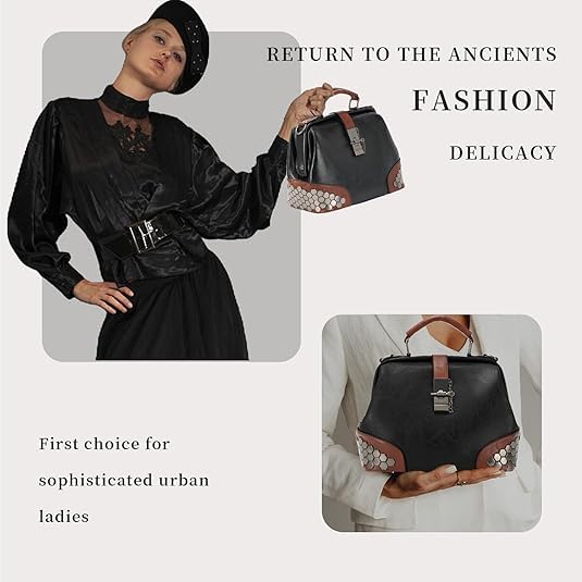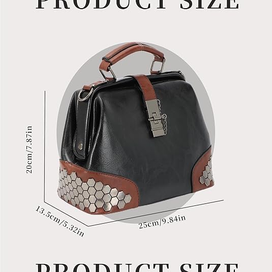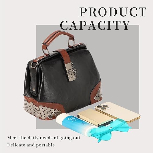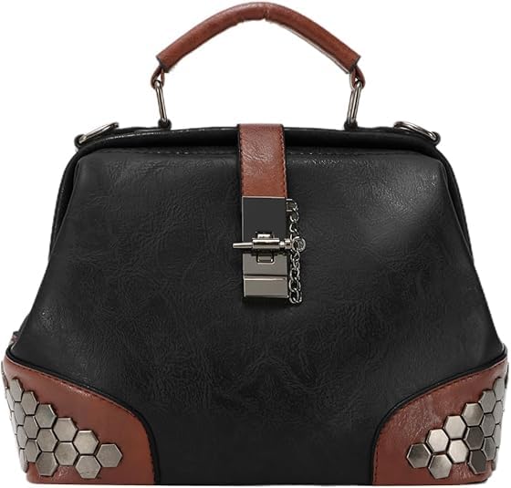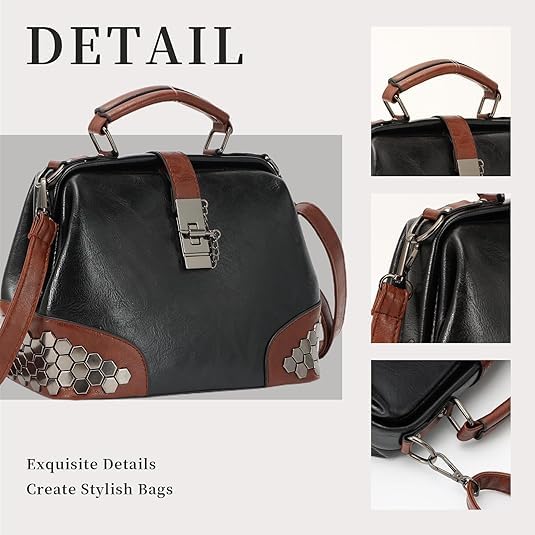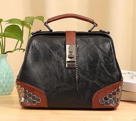 Black Leather Shoulder Crossbody Vintage Women Handbag