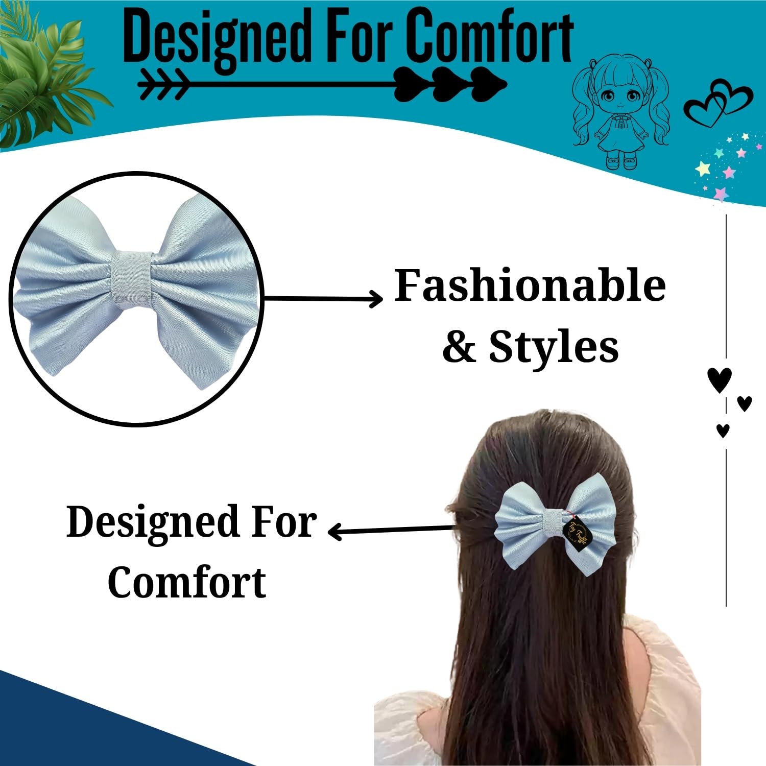 Stylish Bow Hair Clip for Girls & Women | Hair Accessory for Ponytail, Braid & Bun Styling | Party, Wedding & Casual Wear | Non-Slip Alligator Clip | Teen, Ladies, Kids & Adults (Sky Blue)