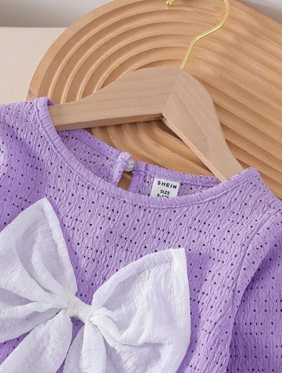 M LASKAR GARMENTS Give your little fashionista a stylish makeover with this kids wear top and denim jeans set. The soft crepe long sleeve top features a beautiful bow design, adding a charming touch to her outfit, while the dyed washed denim pants bring a trendy and modern appeal. Perfect for both party occasions and everyday wear, this outfit offers the ideal combination of comfort, durability, and style.The elastic waist denim ensures a snug fit without restricting movement, making it great for active kids. Designed for year-round wear, this clothing set is a must-have addition to your girl?s wardrobe ? whether she?s dressing up for a birthday, attending a family gathering, or enjoying a casual outing.