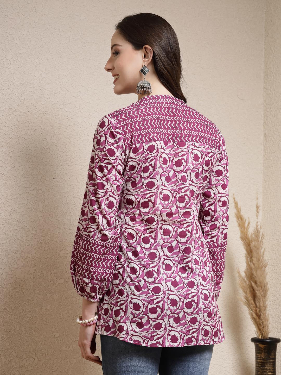 Blue indigo printed cotton top with printed patching on princess line. Perfect for both casual and office wear. Products Length- 30″ Inch.