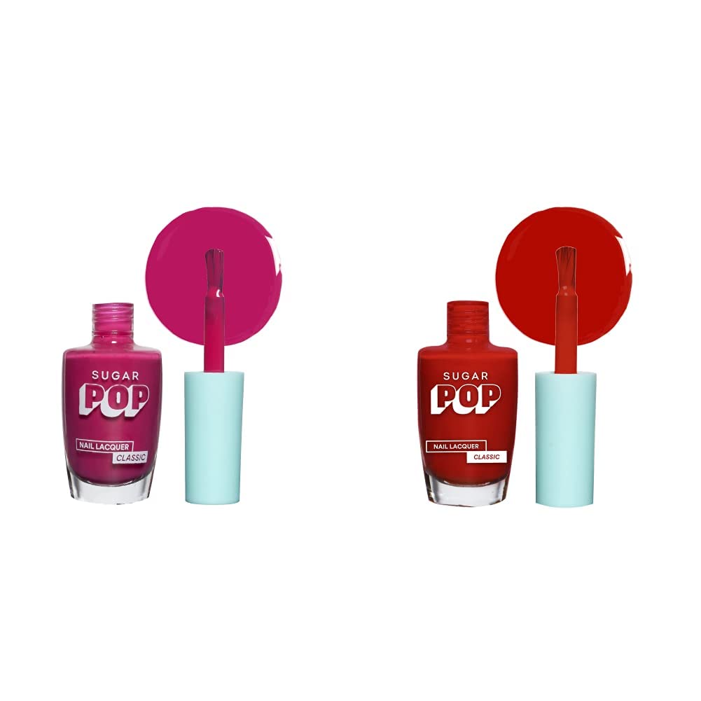 SUGAR POP Nail Lacquer Combo 2 In 1 Nail Kit – 10 Call Me Hot & 18 Red Rum – 10Ml X 2 Units – Dries In 45 Seconds, Chip-Resistant, Long-Lasting. Glossy Finish High Shine Nail Enamel