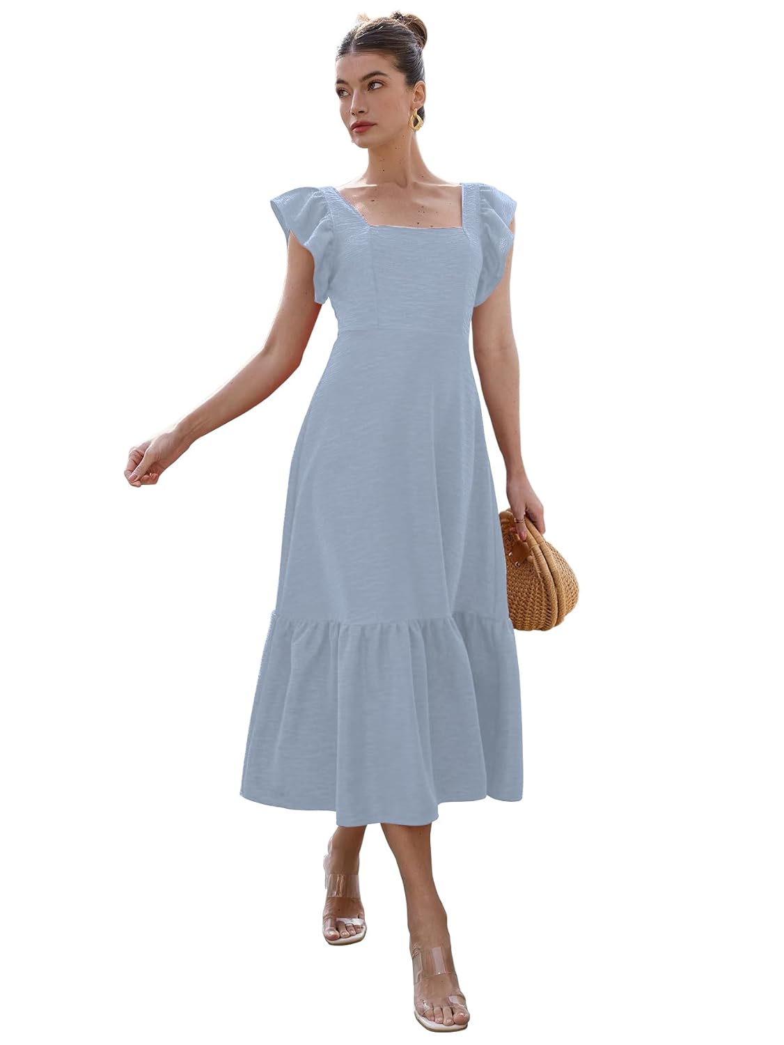 Generic Name : Women’s Midi Dress, Square Neck, Ruffle Sleeves, Casual A-Line Style Dress For Women